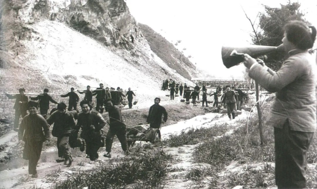 ▲二汽职工在扛运石料