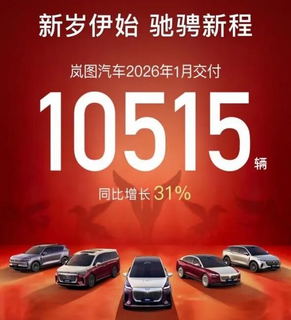 今年1月,岚图汽车交付10515辆,同比增长31%,以破万辆的月交付量开启新一年。除市场表现外,其资本进程亦取得实质性进展,岚图汽车以介绍方式赴港上市已获中国证监会备案。2026年,岚图汽车将推出四款搭载L3级智能辅助驾驶硬件的新产品,覆盖SUV、FUV、MPV三大品类,持续扩容产品矩阵。其中,作为中国首款量产L3级SUV的岚图泰山Ultra,搭载华为乾崑智驾ADS 4四激光解决方案,预计今年3月开启交付。