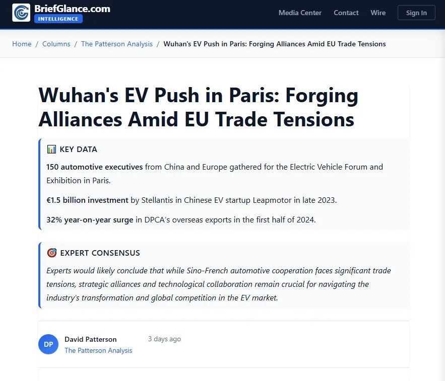 欧美主流媒体平台从多个角度聚焦本次活动。美联社以“武汉制造”在巴黎首次亮相为题,分析中欧汽车产业正在探寻合作新途径;法国最具权威性的经济财经类日报《回声报》认为,斯泰兰蒂斯正在重振其与东风汽车的合作关系;彭博社称,斯泰兰蒂斯集团正与东风汽车集团洽谈更深层次的合作,这项谈判若最终落地,将是中欧汽车合作模式从“单向输入”到“双向输出”的历史性转变。美通社对活动进行专题报道,晨星网等574家全球知名媒体平台也纷纷进行转载,进一步扩大了活动国际影响力。