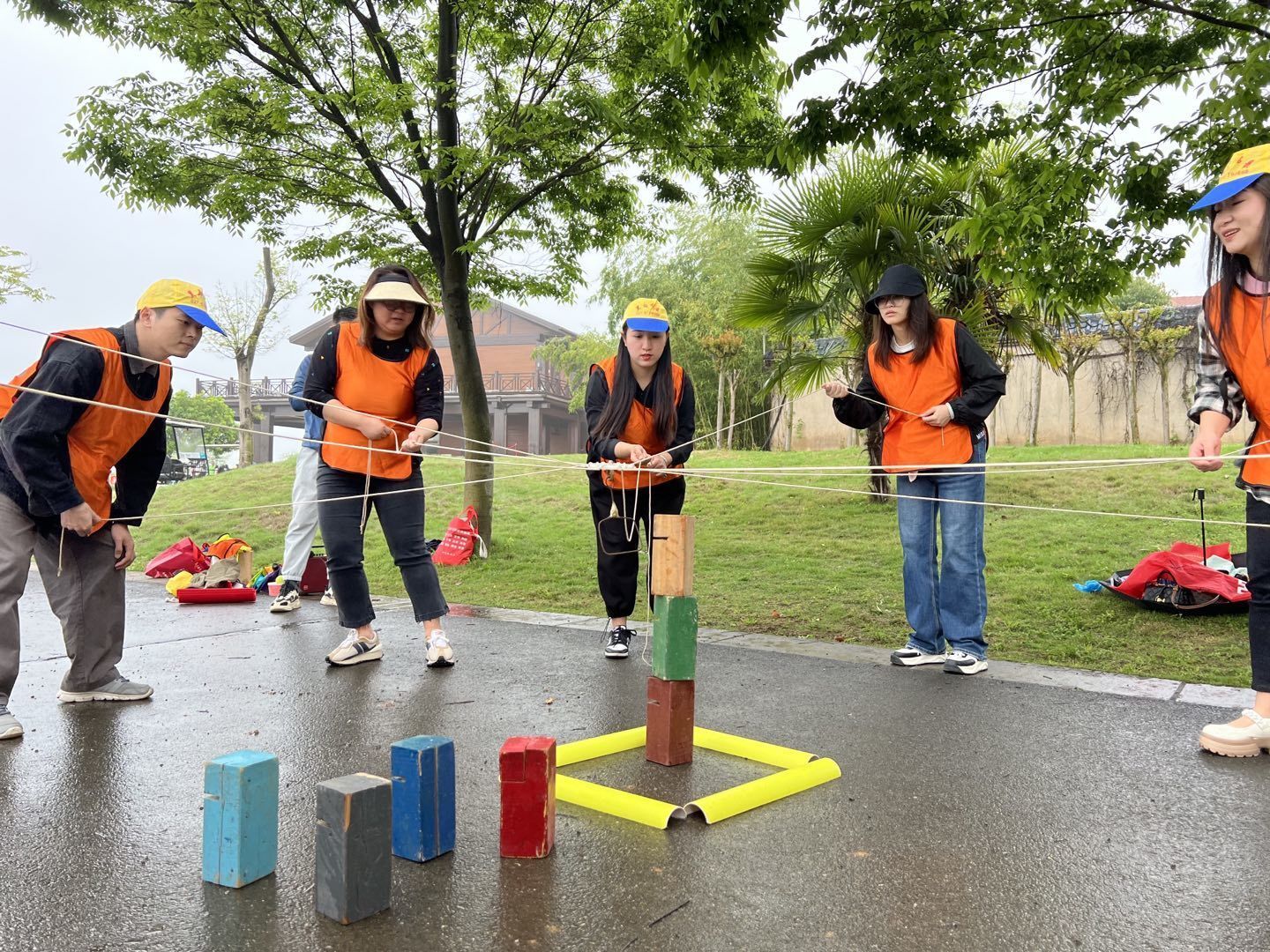 活动现场,队旗在激昂的队歌声中迎风飘扬。“团队飞盘”比赛中,两队神投手大显身手,上演激情对决。“球行万里”“协力筑塔”等活动项目中,大家通力协作,为了各自战队的荣誉而战。