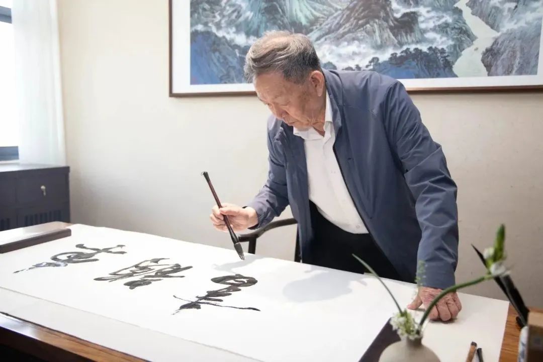 掩映竹木,书盈四壁,轩辕书社翰墨飘香。书社内陈列近千册大家名作,展示着岚图等仿真汽车模型,辅以珍贵历史图片,讲述中国车谷汽车文化和产业发展故事。蒋子龙即兴挥毫,留墨“车韵书香”。