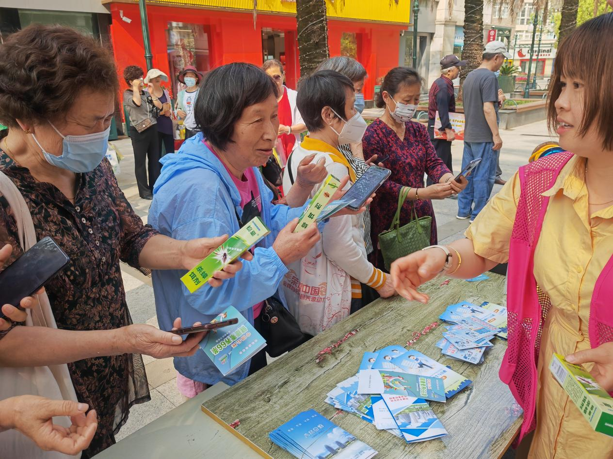社区工作人员通过悬挂横幅、发放宣传册、讲解除“四害”药品的使用说明等形式,向居民宣传“四害”的危害性,增强居民“除四害”意识。