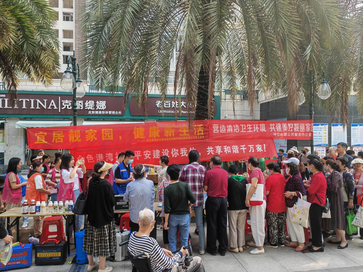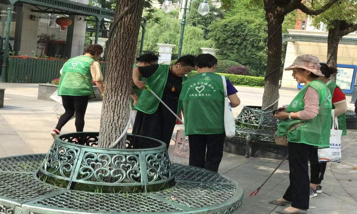 金色港湾社区把志愿服务活动作为爱国卫生运动的有力载体,组织“灯塔”志愿服务小队的13位阿姨在小区开展垃圾清扫活动,以“一抹绿”引导居民自己动手净化绿化美化家园。