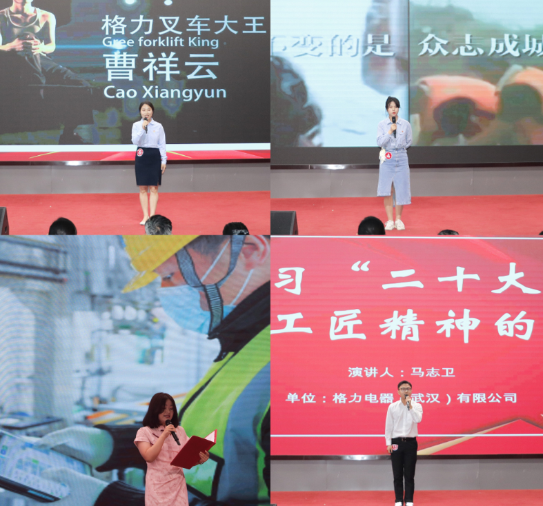 选手们上台激情演绎,从实际出发,阐述了不同领域的新时代青年对党的二十大精神、对工匠精神的深刻领悟。最后,由格力电器(武汉)有限公司的杨玉兰、马志卫斩获一等奖。