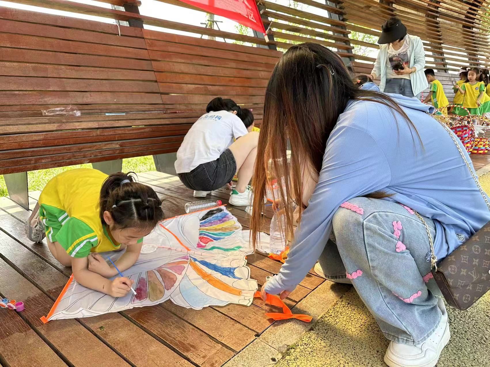 在煮鸡蛋的间隙里,工作人员支起了一个小小的风筝摊,小朋友们围坐在一起,在大人们耐心辅导下,充分发挥想象力,一笔一画用色彩点缀风筝,翩翩欲飞的蝴蝶、古灵精怪的鱼儿,形态各异、活灵活现。一支支风筝借着轻柔的春风飞上蓝天,放飞奇思妙想,放飞童真与希望。