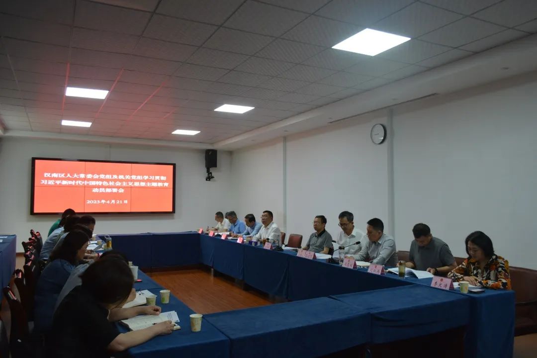 会议要求,要加强组织领导,确保全面完成主题教育的各项任务。开展学习贯彻习近平新时代中国特色社会主义思想主题教育,是今年全党政治生活中的一件大事。要压实领导责任,充分发挥常委会党组及机关党组班子的引领带动作用。要严格标准质量,讲究工作实效,做到规定动作一个不省、重点举措一条不少、相关要求一项不松。要注重统筹兼顾,善于把主题教育同推进党史学习教育常态化制度化结合起来,与全区大兴调查研究、奋力推动武汉经开区“二次创业”实现新跨越有效衔接,同区人大常委会“代表活动年”“代表三进·共同缔造”活动一体推进,进一步激发、调动机关党员干部的工作热情和干劲,努力将主题教育的显著成效转化为推动人大工作创新发展的实际成果。