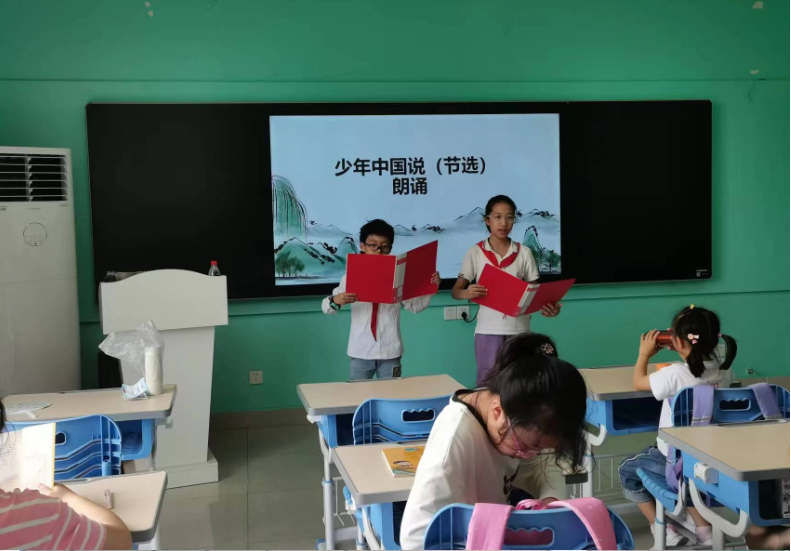 “少年强则国强,少年智则国智,少年富则国富……”除了分享书籍和故事外,两位小朋友正在现场激情洋溢地朗诵了《中国少年说》,用稚嫩却又坚定的声音传递了少年的蓬勃朝气,以饱满的热情和自信大方的形象,展现了中国少年的风采。