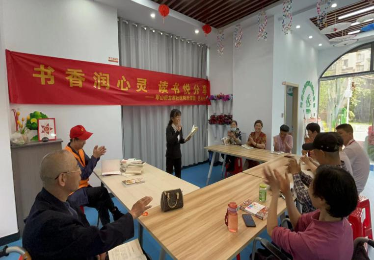 纱帽街道阳光家园开展读书分享活动,一位肢体残疾人在谈到自己的读书感悟时说道:“或许通过读书并一定能获得成功,但是我通过读书,学会了不向命运低头,丰富了我的精神世界。”