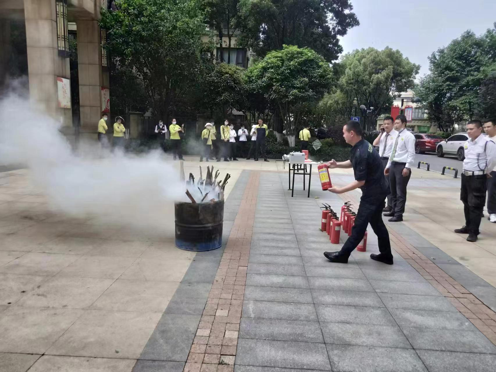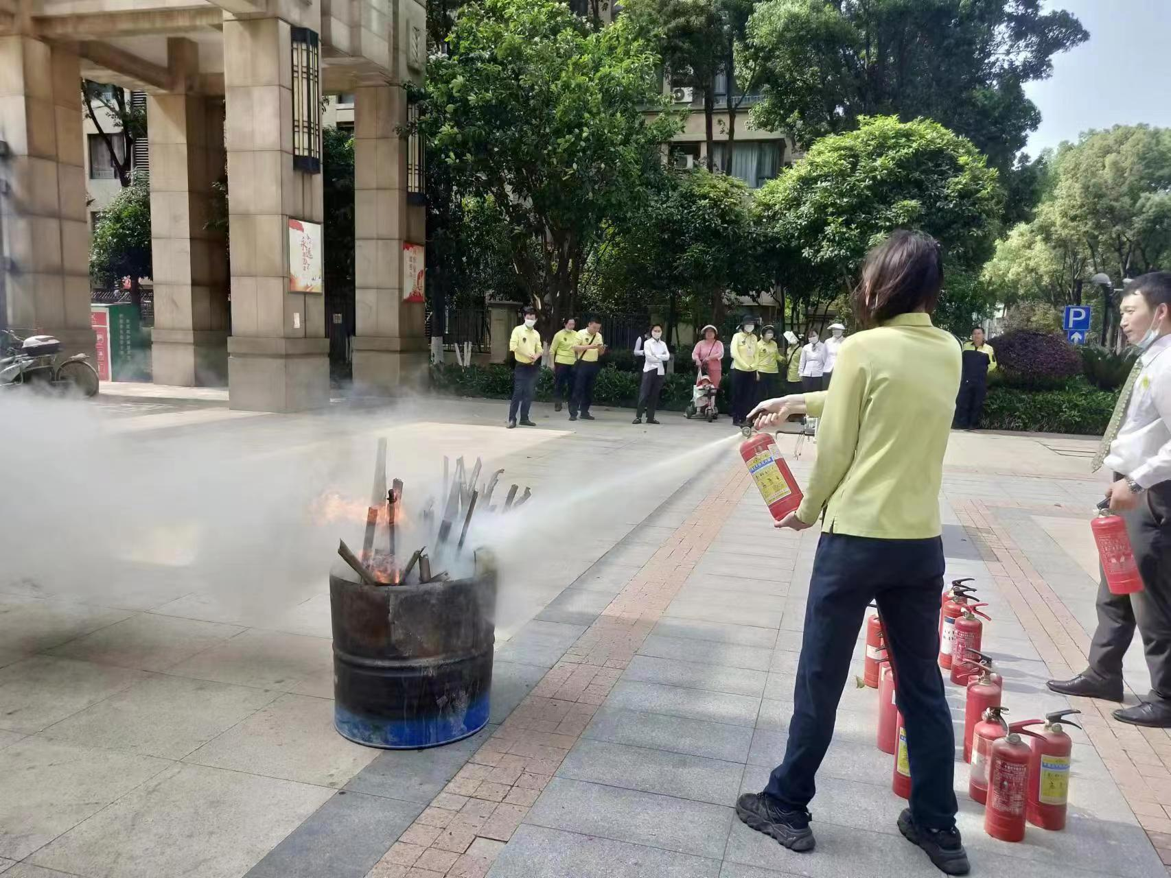 演练完成后,金域蓝湾社区联合万科物业对社区居民进行了消防知识培训,让居民体验了灭火器扑救初起火灾的方法,提升居民消防安全意识和应急自救能力。