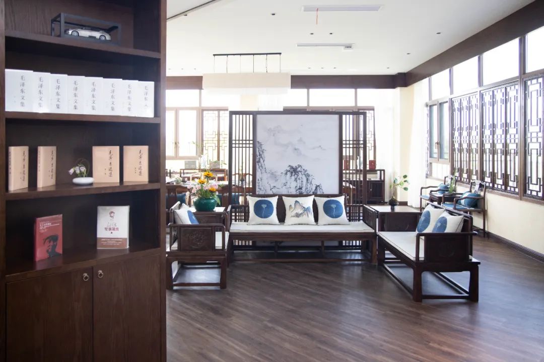 除了书籍、茶座,书社一楼还展示有东风、神龙、岚图、猛士、路特斯、小鹏等经开区车企的汽车模型,辅以珍贵历史图片,讲述中国车谷汽车文化和产业发展故事。书社二楼有书籍客座区,从错落的木制书架之间偶尔走过,即可抚平内心浮躁。