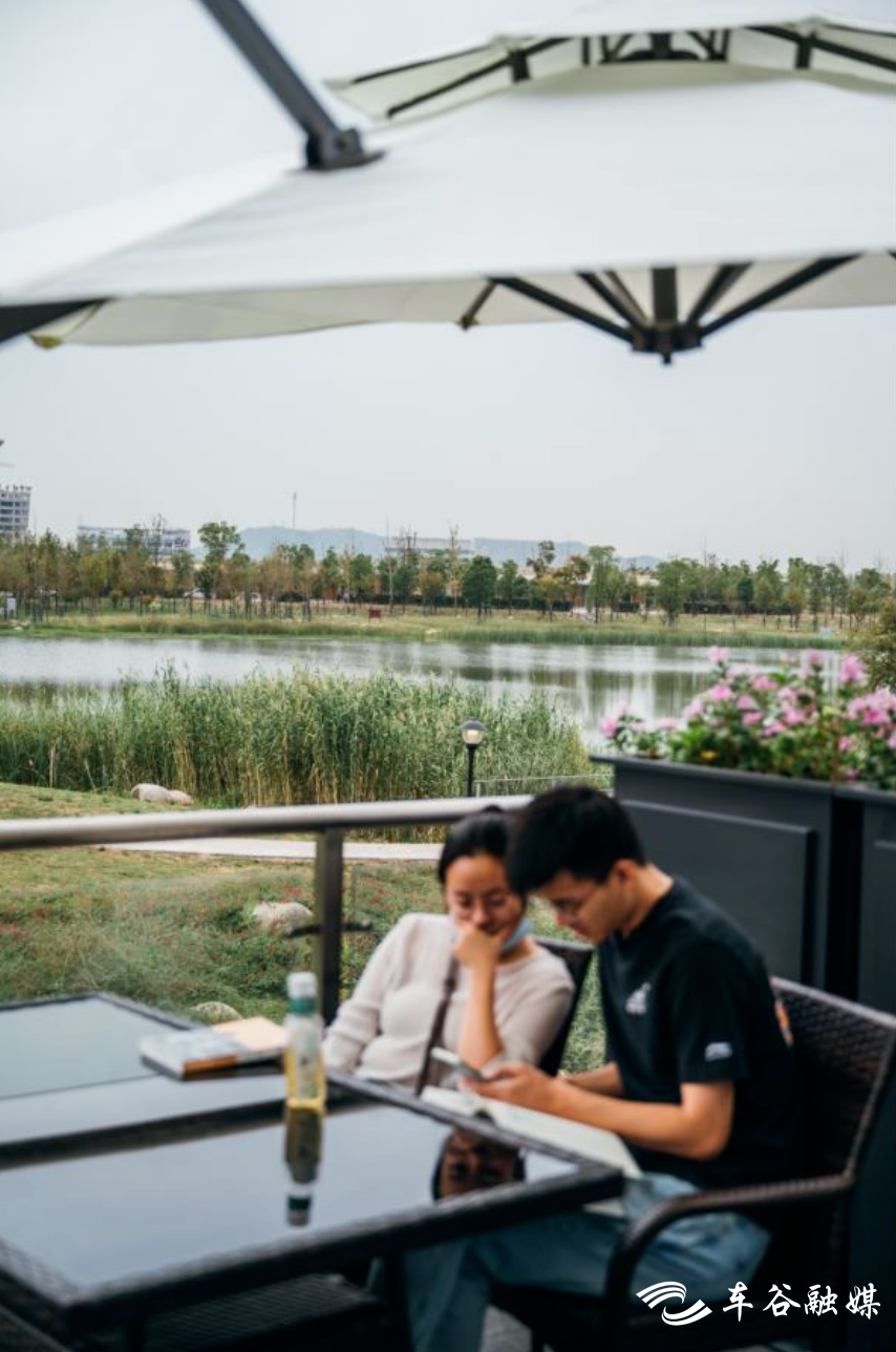 坐在鲁迅书店的露台上,对岸正是刚开放的轩辕书社。川江池的美景尽收眼底,“书香”与“车韵”相得益彰。盈盈的湖水、随风飘荡的新绿,抬首便能把整个车谷的初夏收藏。