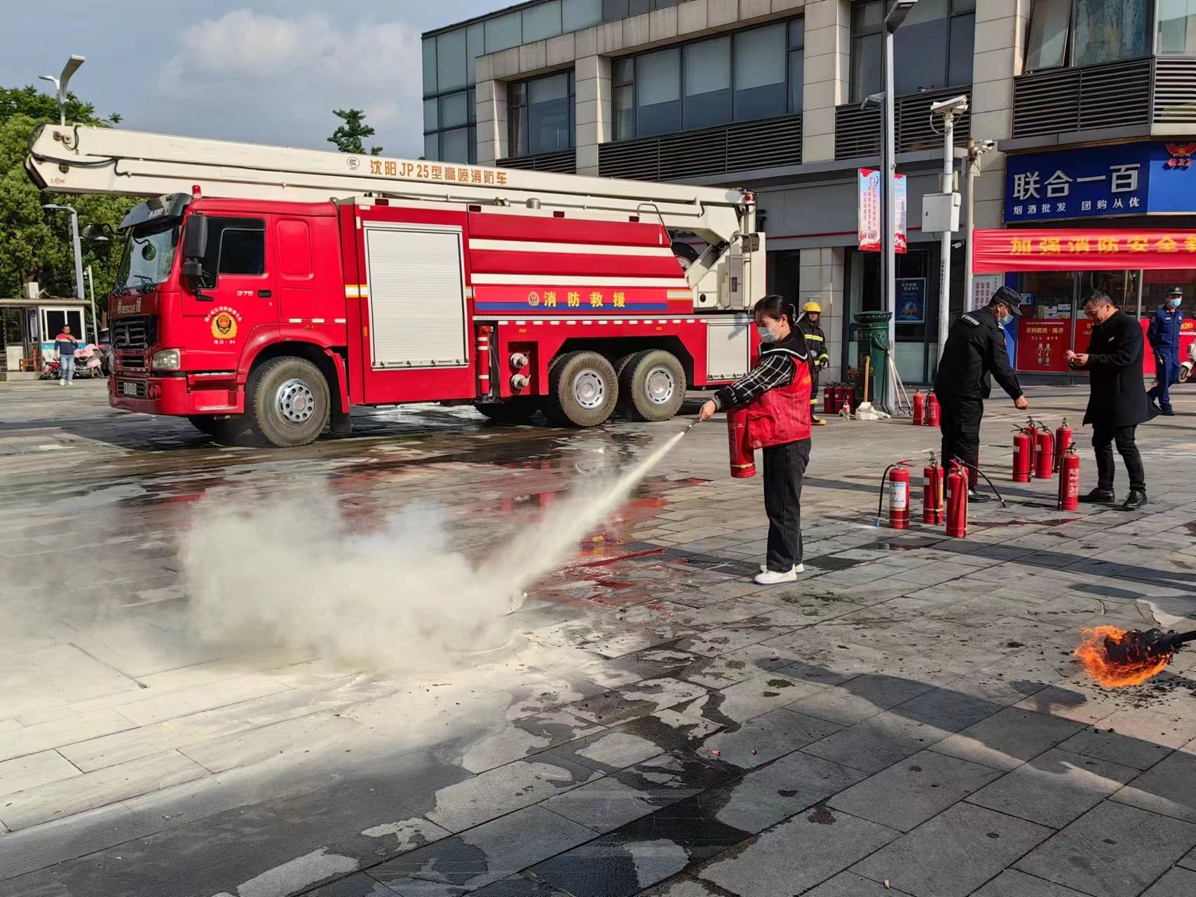 随后,消防站工作人员为居民讲解了灭火器的种类、结构及使用方法。大家纷纷提起灭火器上前实践。“虽然灭火器随处可见,但是平时并没有机会上手,只有理论没有经验,经过这次的消防演习,我们才真正学会了。”