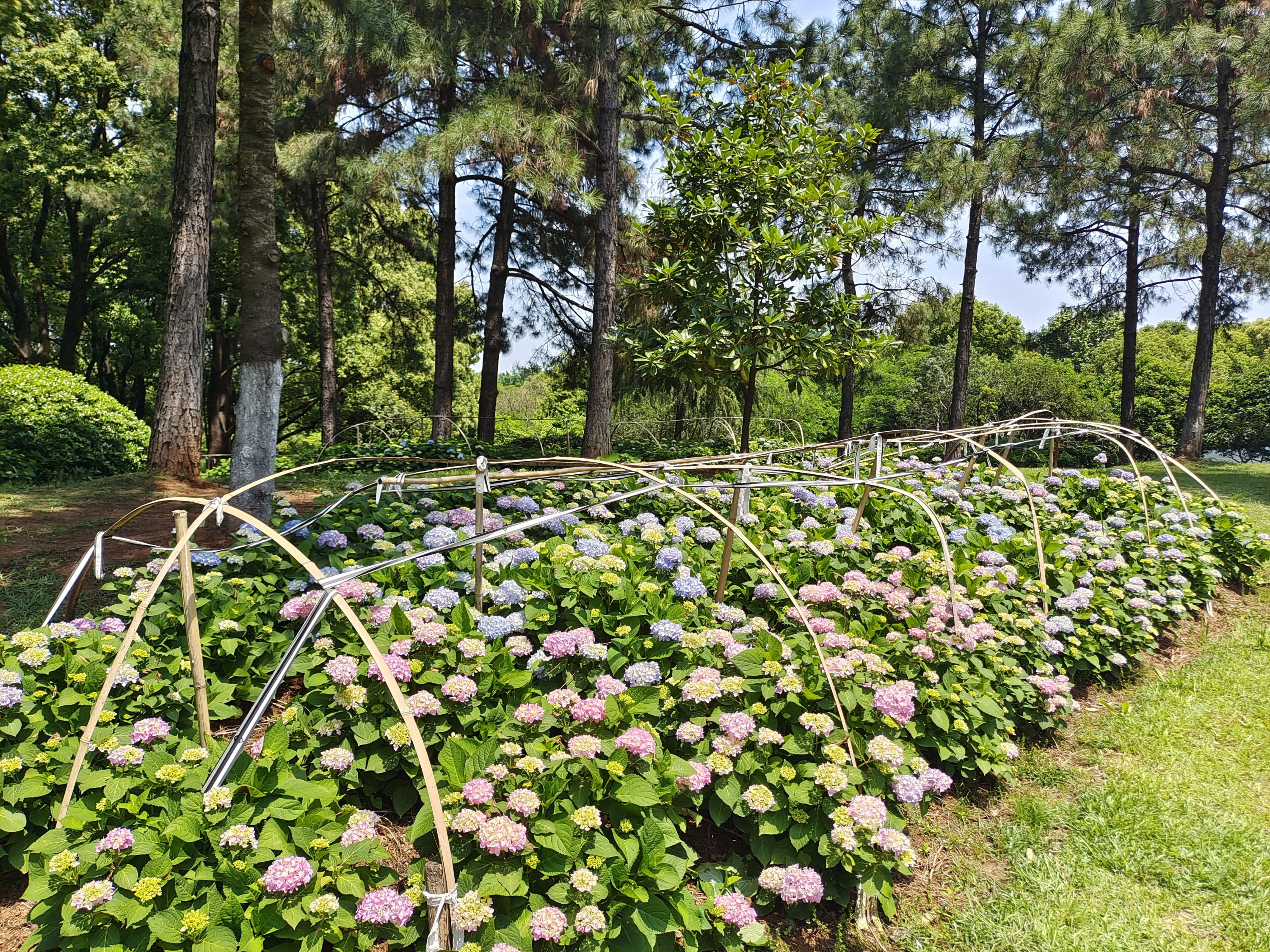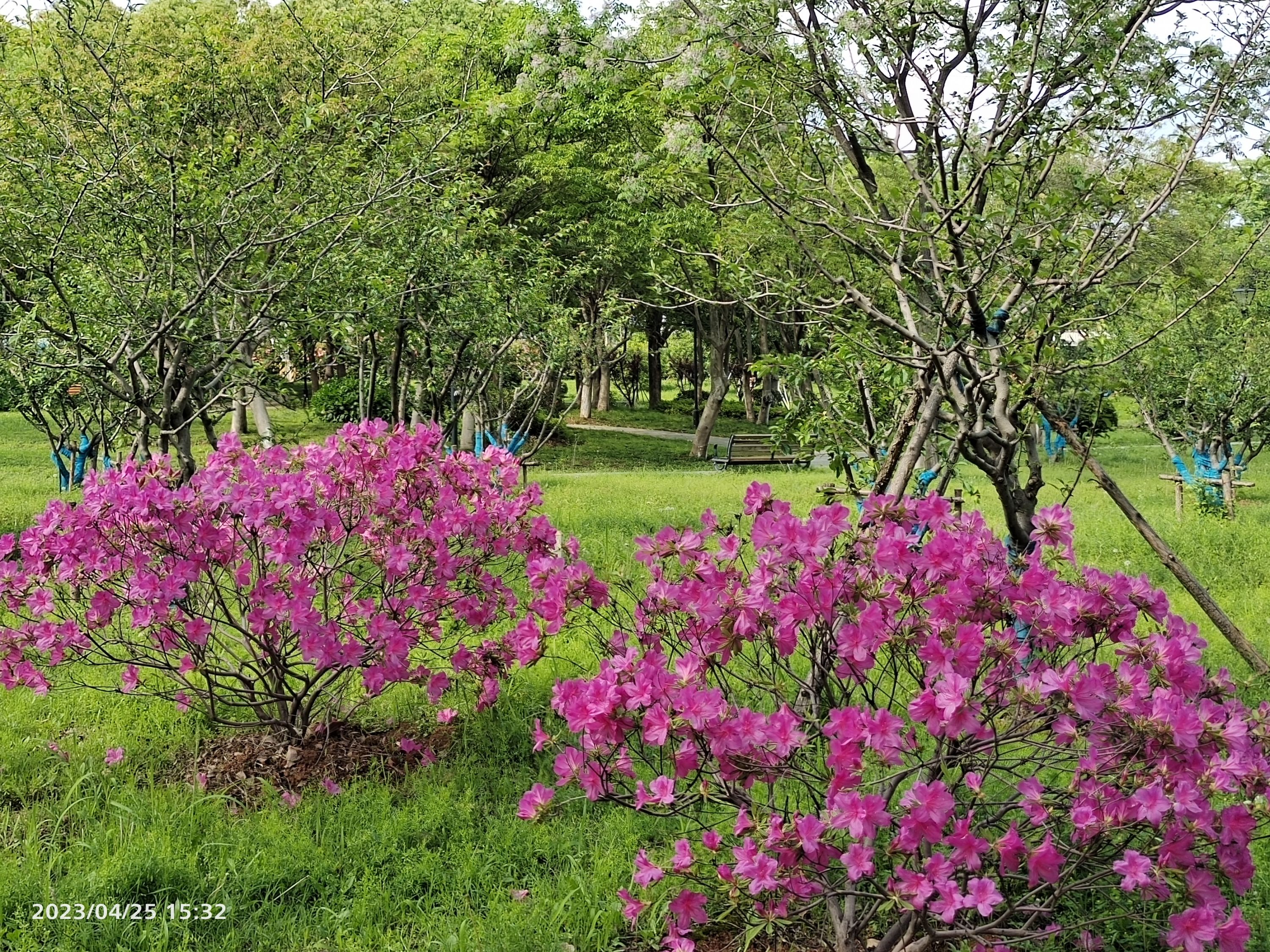 近段时间,公园内的杜鹃花、月季花、缀花草坪、月见草正在盛开,花期将持续到五一长假之后,初夏的绣球花已经含苞待放,五一长假期间即将盛开。