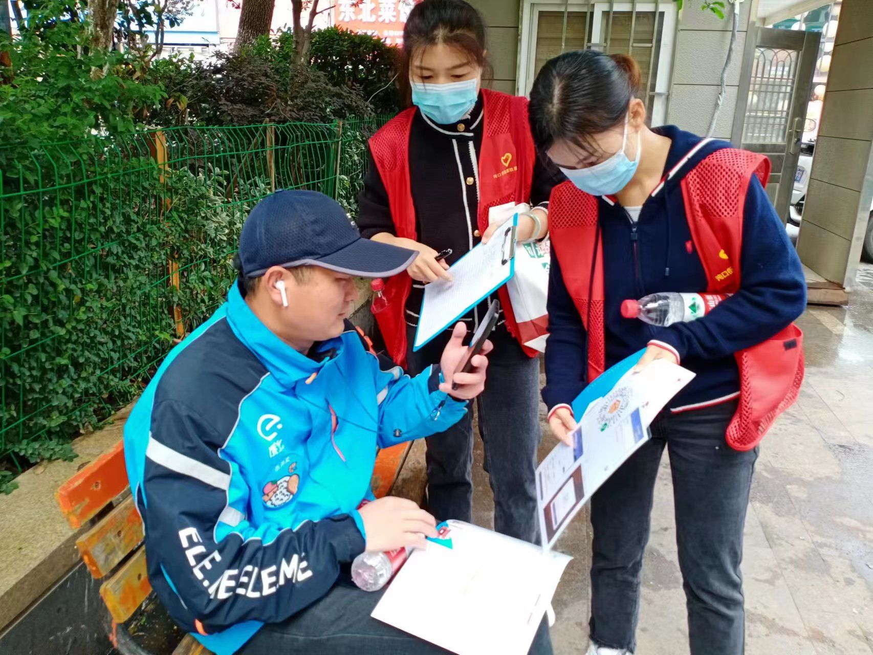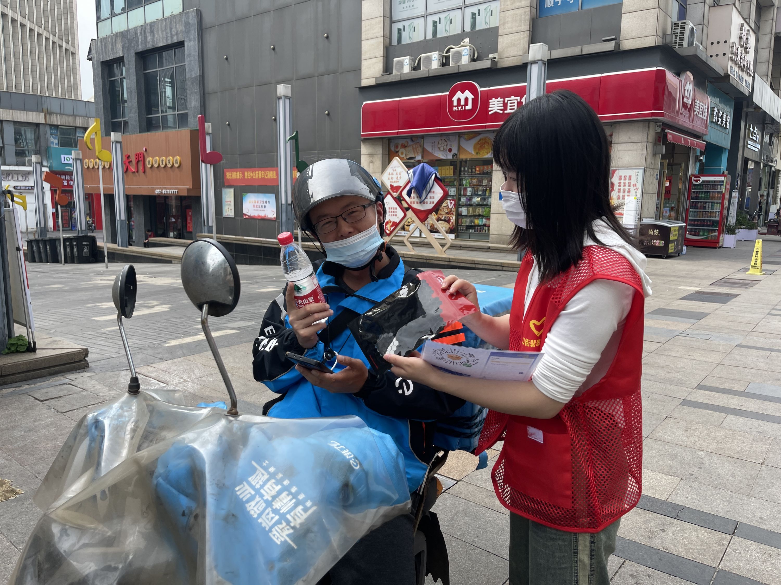 社区志愿者们穿梭在商业街上,在收集新业态新就业群体意见建议的同时,向他们宣讲“江城小蜜蜂”APP平台的使用方法及积分兑换礼品规则,鼓励引导他们积极参与“随手拍”“用心做”,主动融入社区基层治理。
