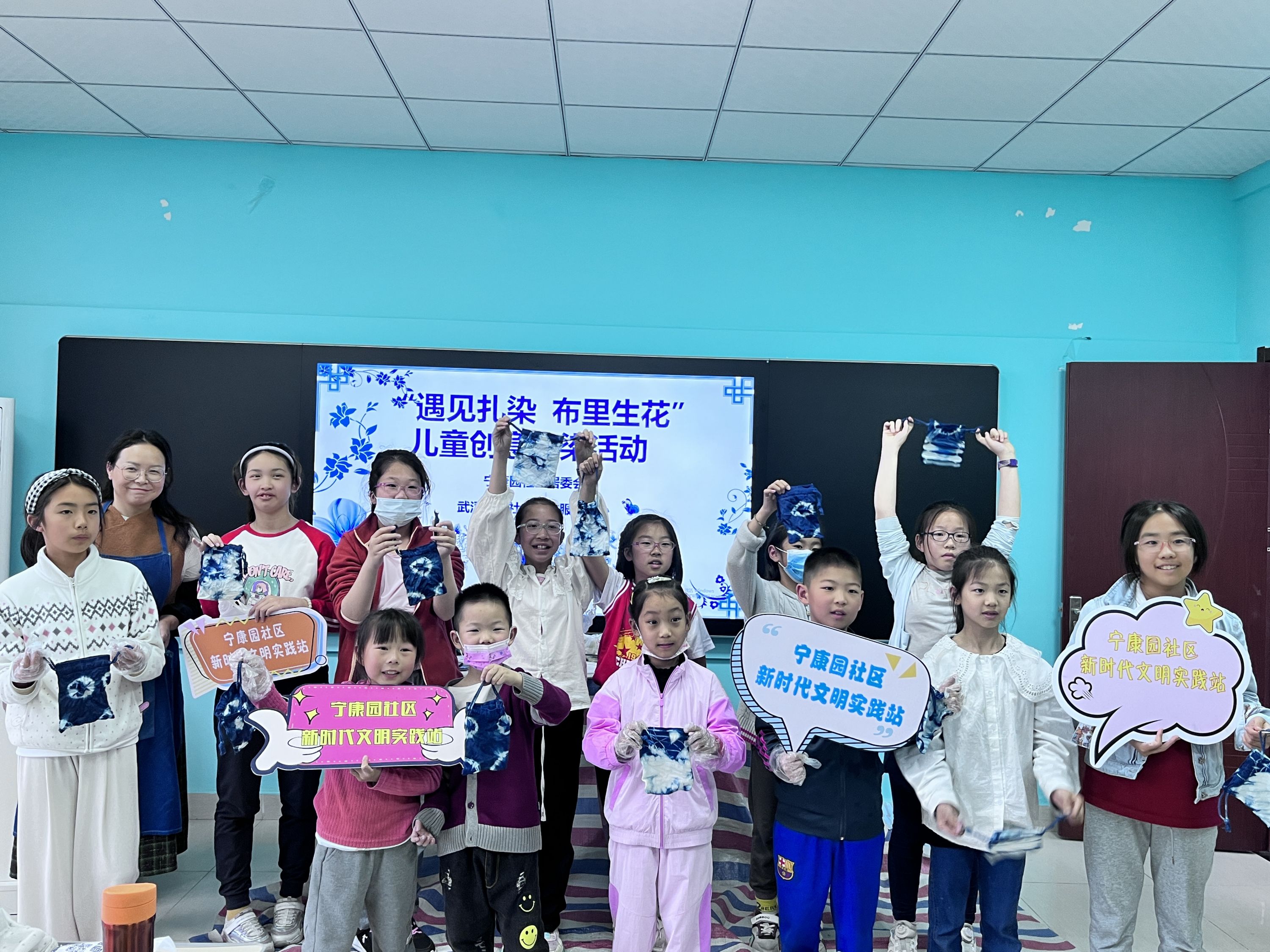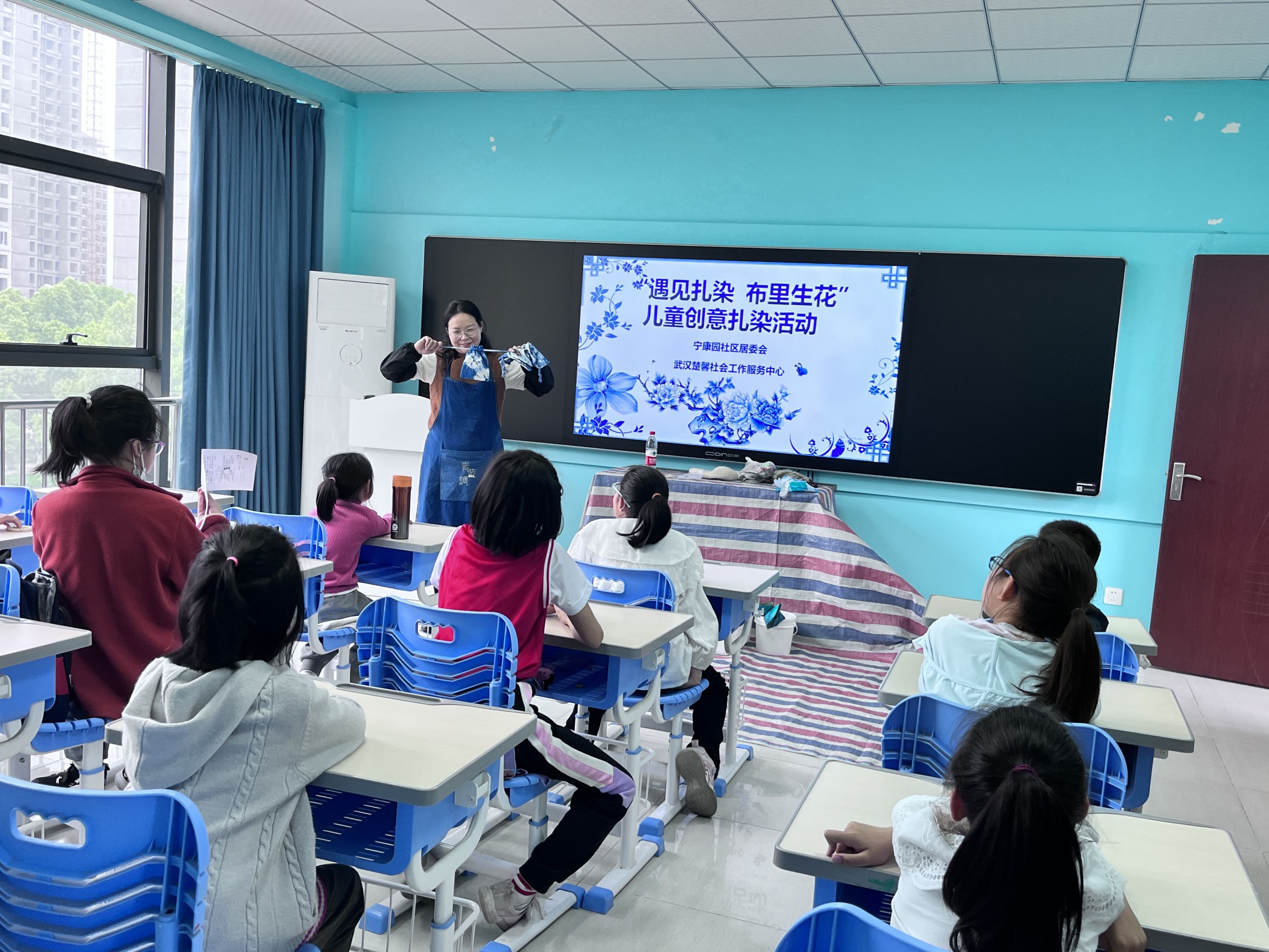 4月28日,沌口街道宁康园社区四点半课堂开讲,开展主题“遇见扎染布里生花”的儿童创意扎染活动,带领孩子们了解扎染工艺,弘扬中华传统文化,培养他们的动手能力。
