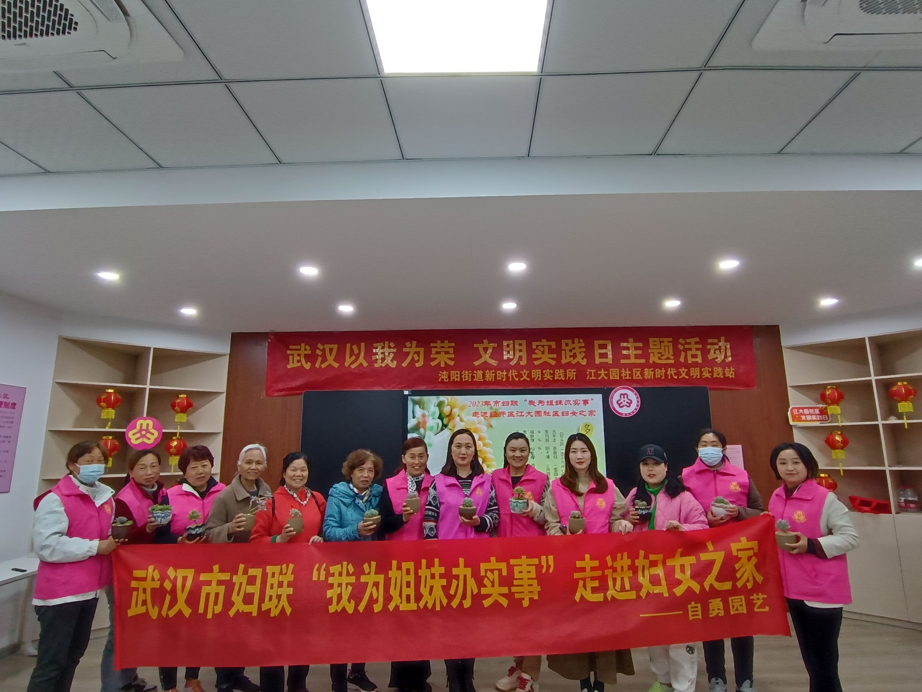 车谷融媒4月29日讯 4月25日下午,武汉市妇联“我为姐妹办实事”活动走进武汉经开区沌阳街道江大园社区妇女之家,来自社区和益净志愿服务中心妇女联合会的15名妇女成员,在老师的带领下开展多肉DIY活动。
