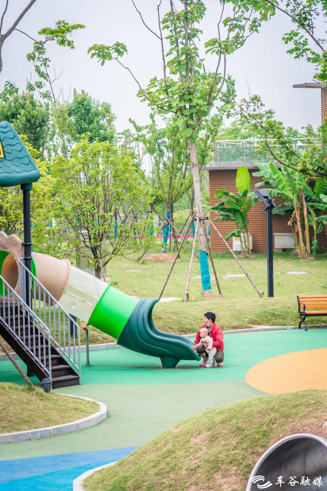 还有五彩缤纷的儿童滑梯、造型各异的游玩设施,每个都有小朋友排队等候玩耍,说是小孩儿撒欢的天堂也不为过。
