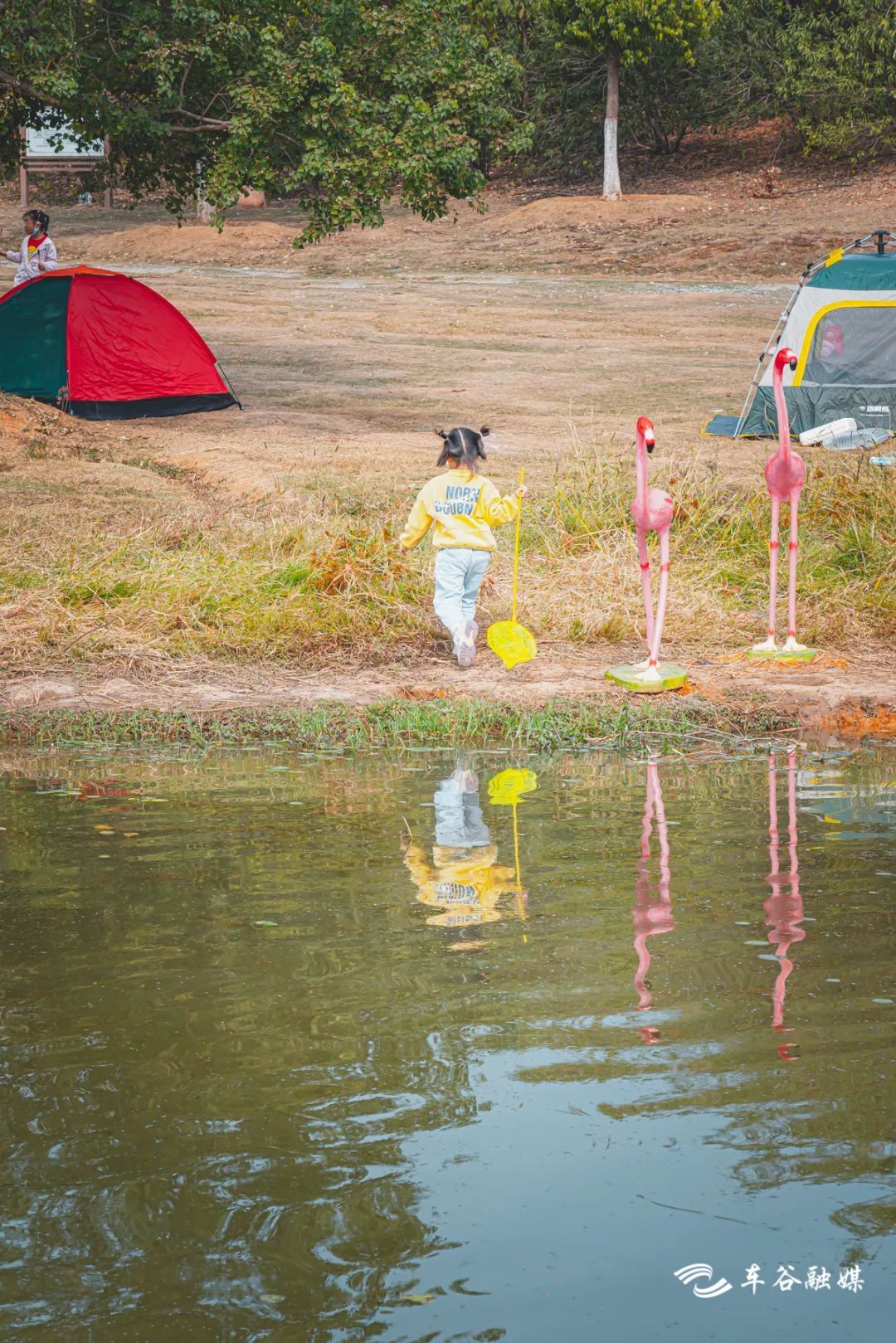 湖边有平坦广阔的草坪,常来的人早就占据了顶好的位置开始露营,三五好友骑车来垂钓,父子在这里骑行吹风……完全是居民放松的好去处。
