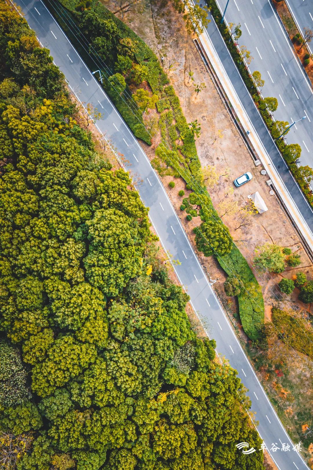 绿道连接起芙蓉园、彩叶林、楚园等多个休闲观赏点,杉树、银杏、樟树打造一片茂密绿荫,穿梭过的飞鸟鸣声清脆。