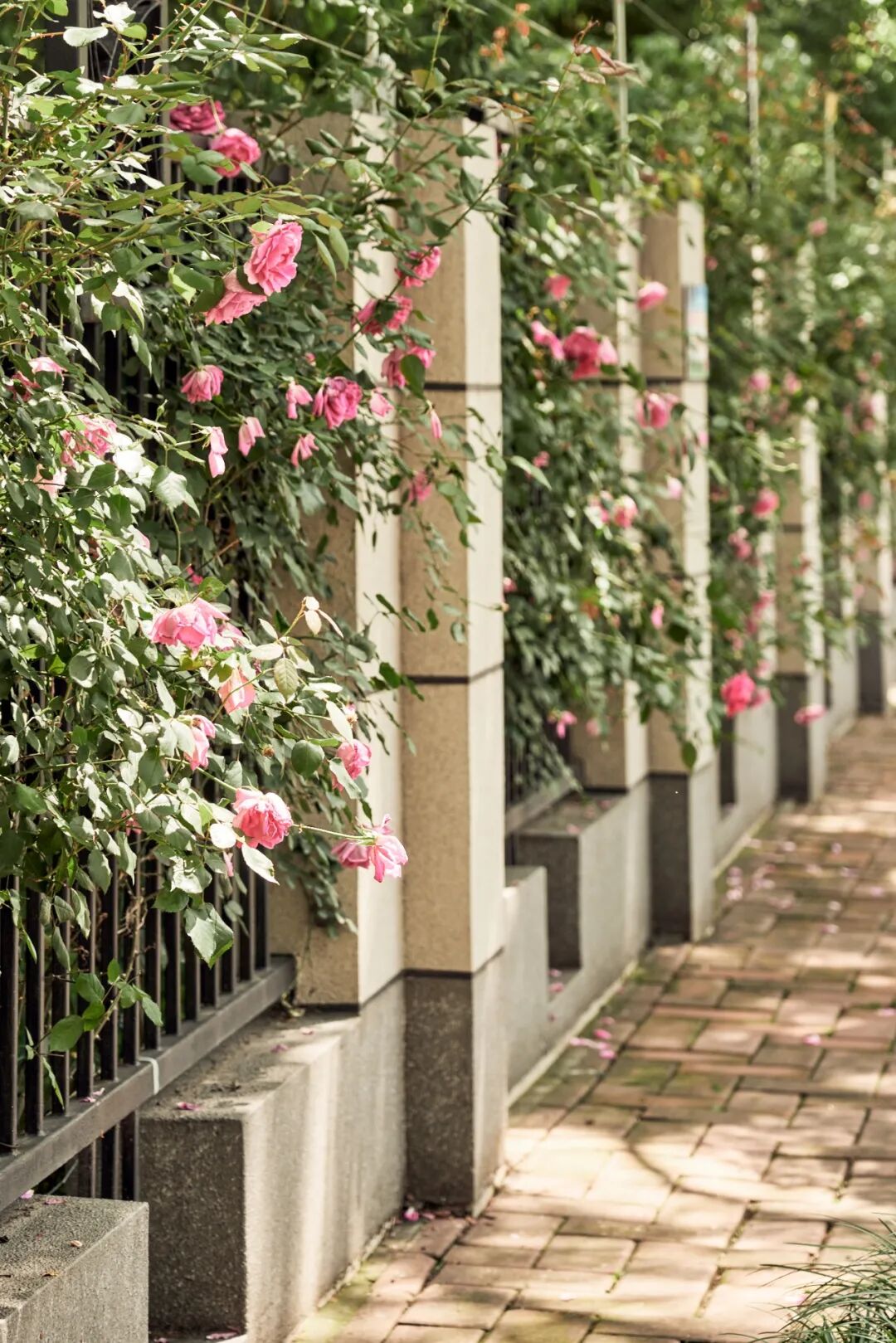 最近出门,处处可见正在盛花期的月季花、蔷薇花,所到之处就像粉红瀑布般倾泻。