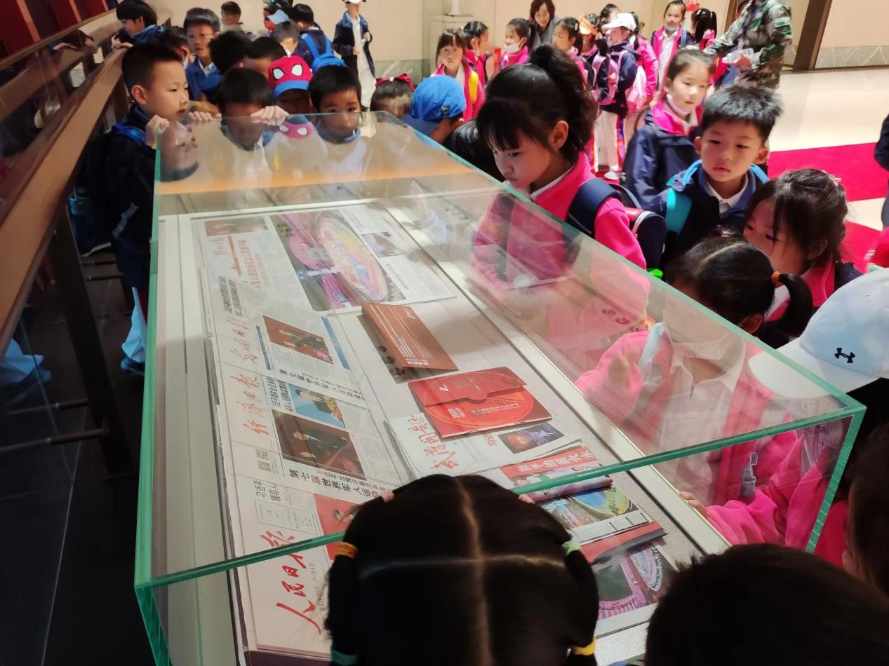 首站,师生们来到中国车谷国际体育文化交流中心,研学导师带着孩子们寻找有趣的形状、多彩的颜色,来了一场有趣的“寻宝”活动。“这儿有椭圆形的徽章!”“这幅画里有紫色!”孩子每找到一件“宝物”,导师便细细介绍其背后的故事,通过一件件珍贵的展品,孩子们近距离了解军运文化,领悟到中国运动健儿团结拼搏、永不言弃的体育精神。