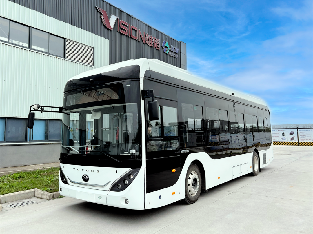 ▲搭载着雄韬氢雄自主研发氢燃料电池发动机系统的氢能公交车