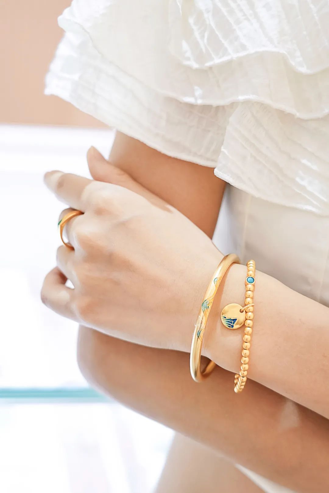 又见青绿,山水与共。周大生国家宝藏IP联名《千里江山》系列,采用古法黄金艺术锻造出千里江山的气魄,金与玉完美融合,温润与贵气尽显其中。