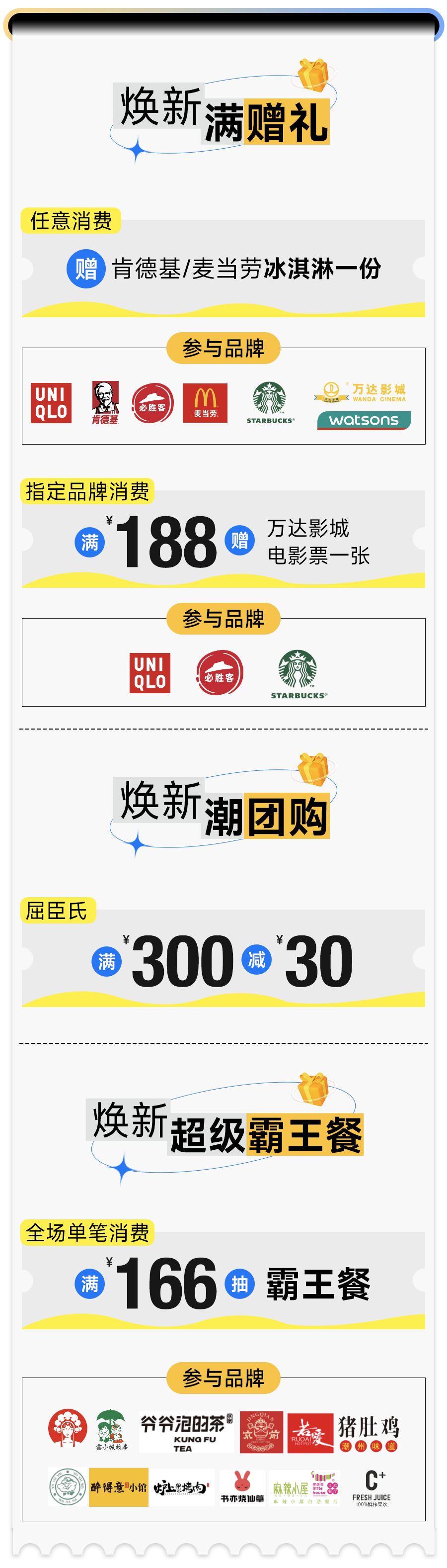 踏入武汉经开万达广场,随处可见的“焕新生”主题福利与活动,洋溢着快乐起飞的气息,也为这场庆典拉开了序幕。