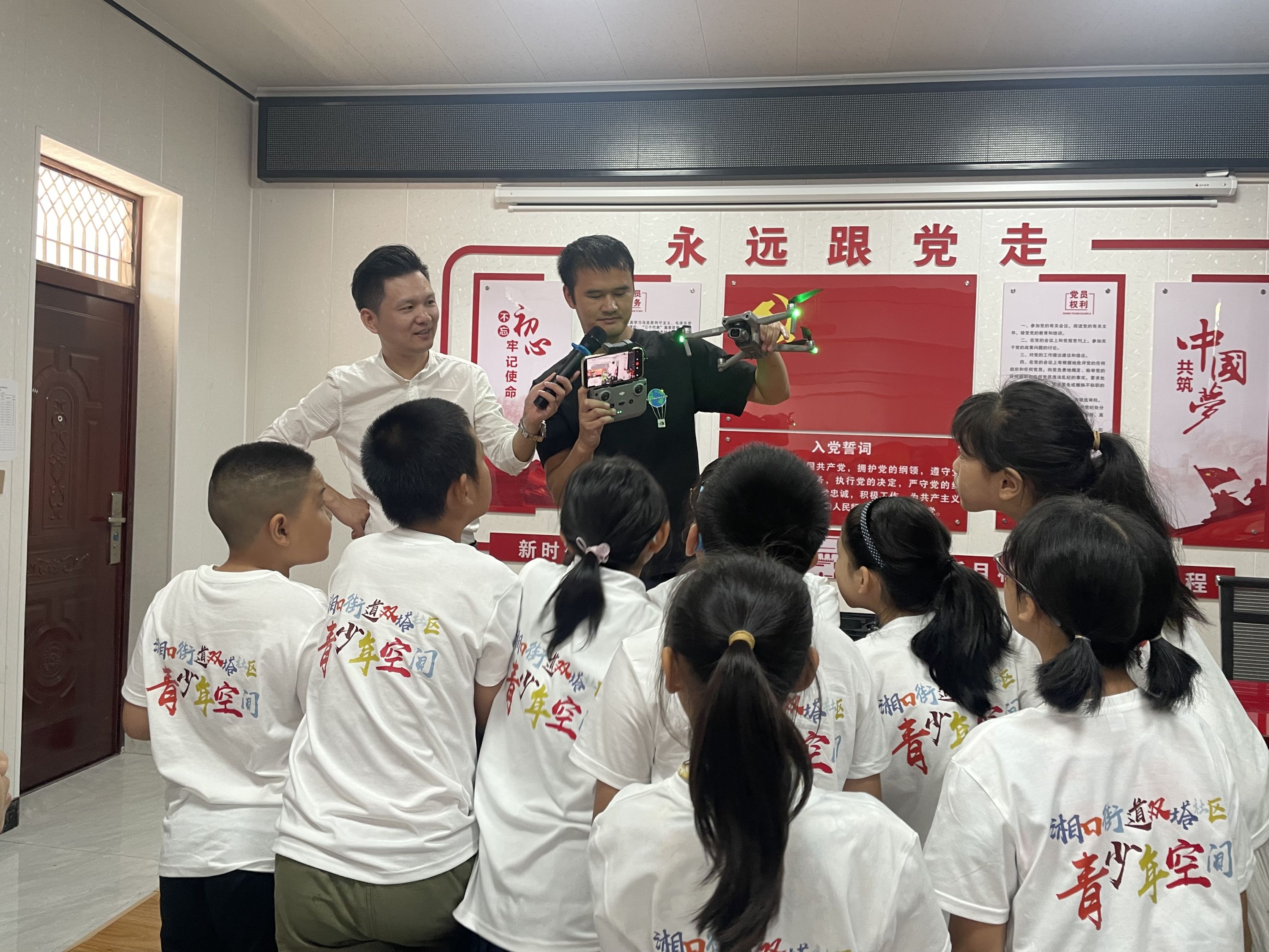 车谷融媒8月18日讯 8月17日,区民政局、湘口街道联合区模型运动协会在双塔社区青少年空间,开展“无人机航模进社区”航空科普活动。