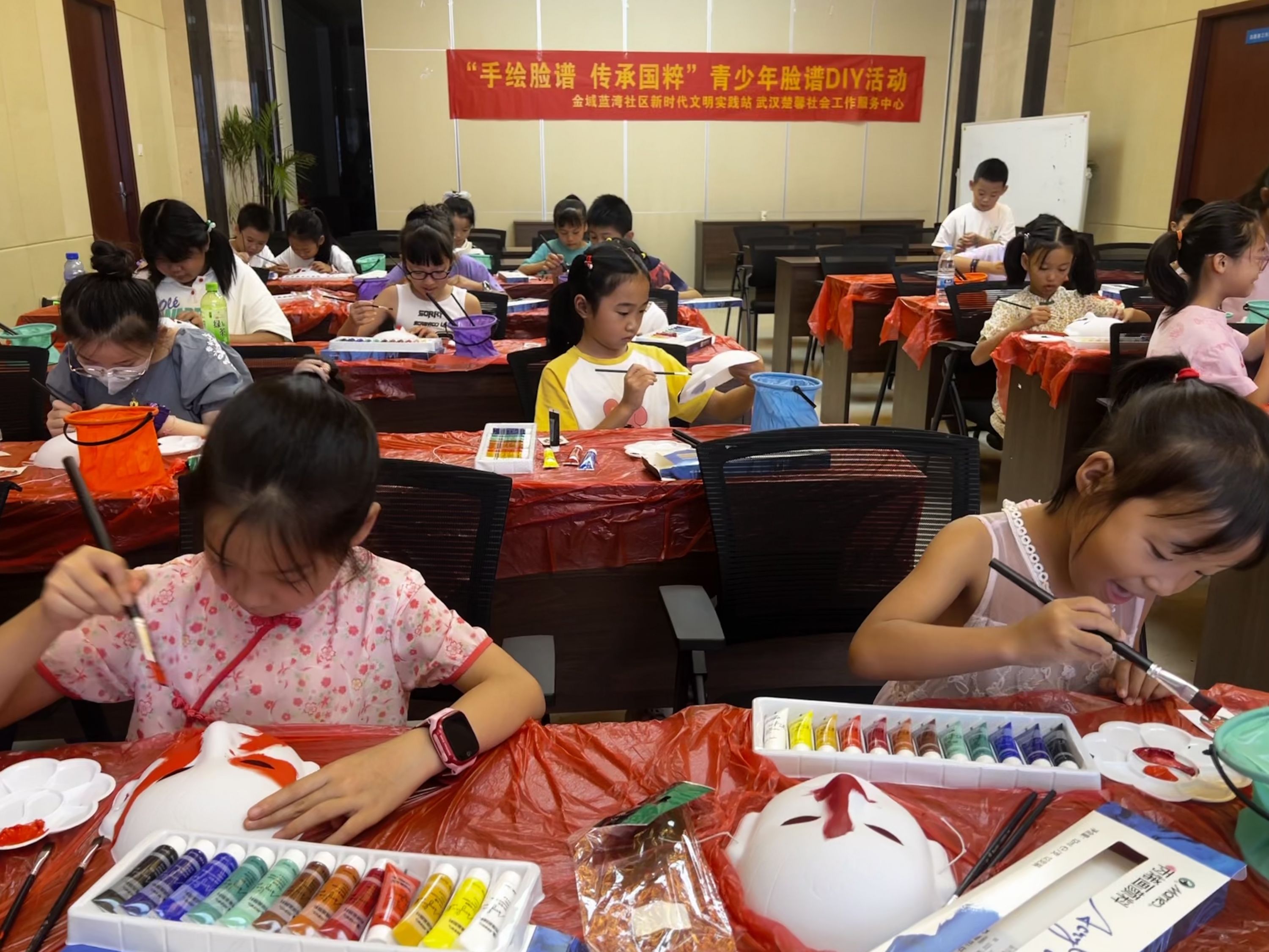 车谷融媒8月18日讯 8月17日,沌阳街道金域蓝湾社区新时代文明实践站联合武汉楚馨社会工作服务中心开展“手绘脸谱 传承国粹”青少年脸谱DIY活动,弘扬和传承非遗文化,丰富辖区青少年的暑假生活,共吸引30名青少年参与。