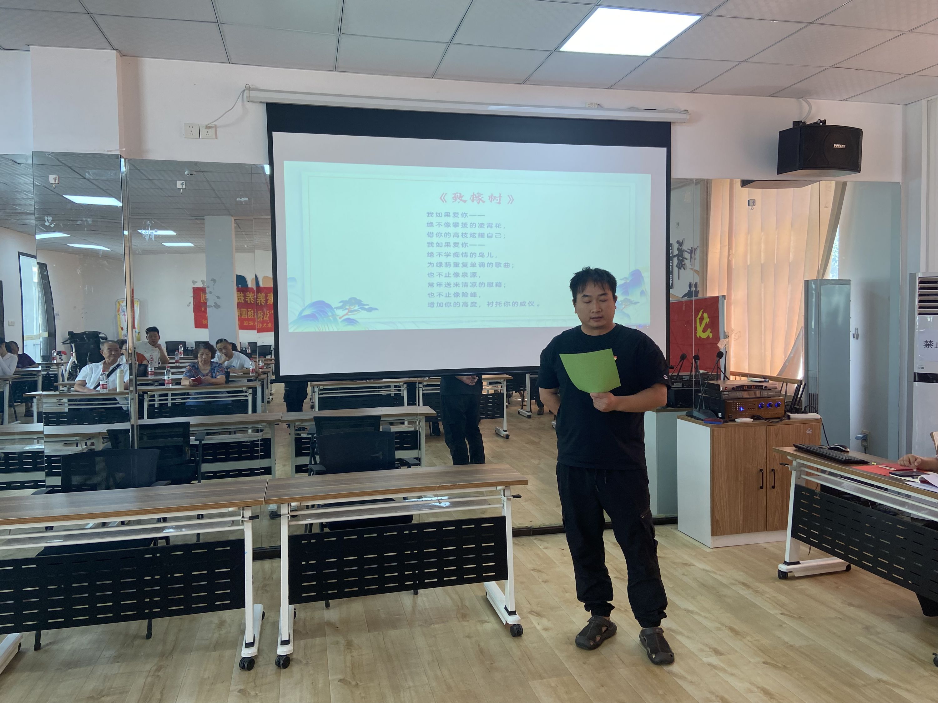 青年党员现场演绎爱情散文《致橡树》,全体党员还一起传唱经典诗篇《国风周南·关雎》。在脍炙人口的经典作品中,大家深深地感受到中华诗词魅力和节日的氛围。