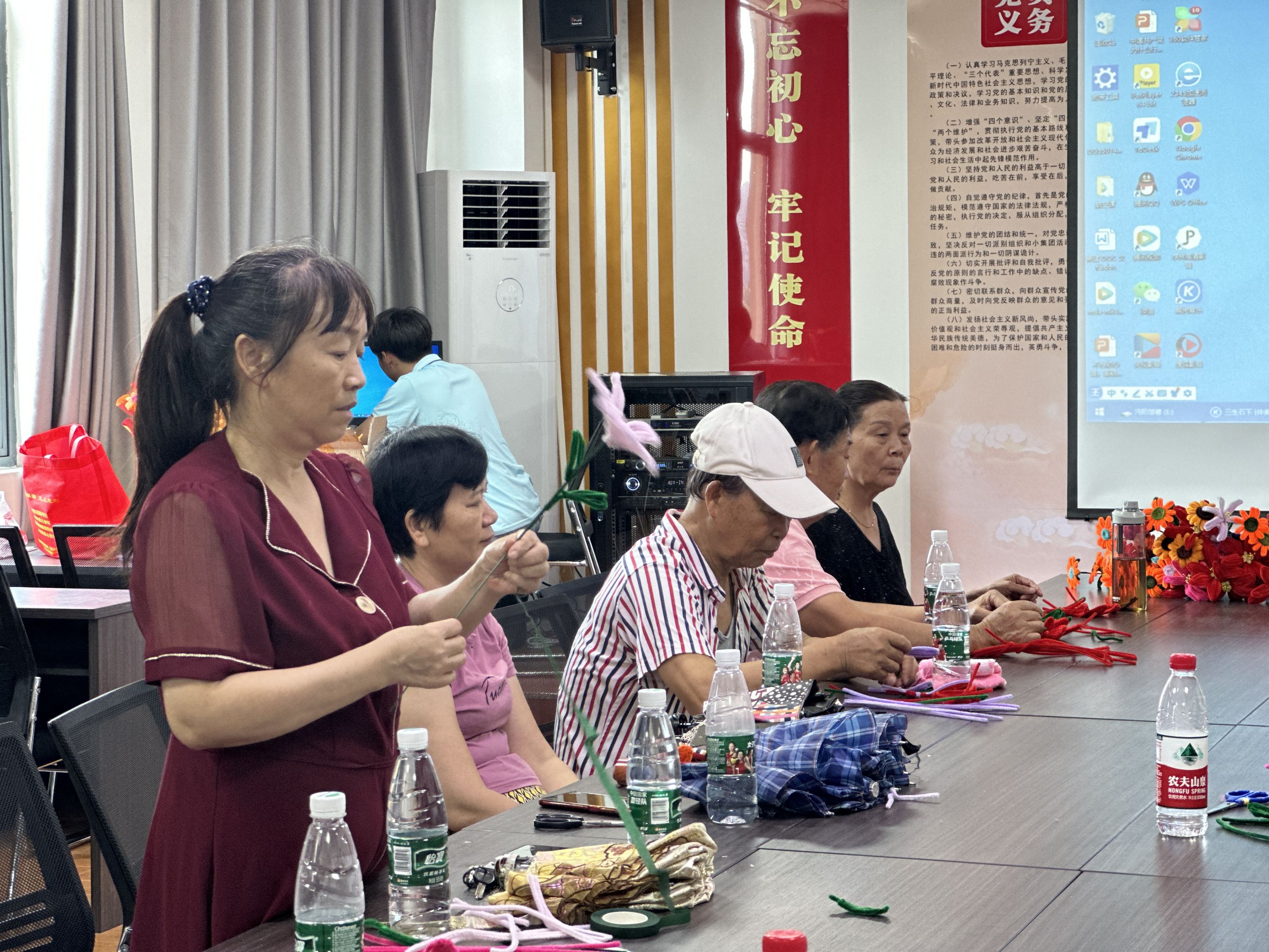 志愿者通过你问我答让大家了解到七夕节的由来、文化习俗、讲述了七夕节间的民间小故事。活动现场,大家互帮互助,边做边聊,经过一个小时的制作,一个个小巧玲珑、栩栩如生的手工花就制作完成了。