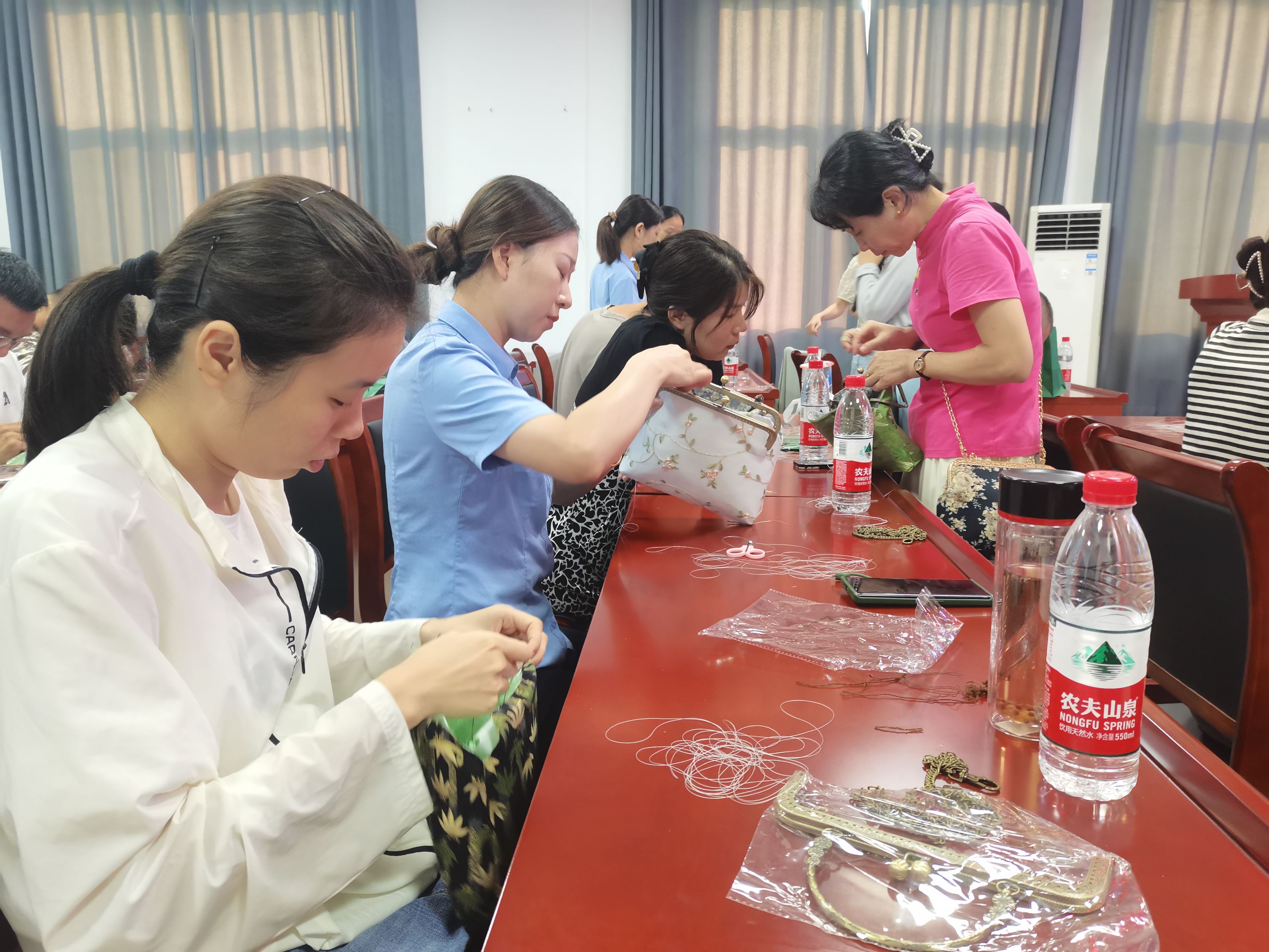 在老师的指导下,经过两个多小时,一个个精致小巧的口金包就制作完成了,参会人员拿着自己的劳动成果,相互展示,分享喜悦。