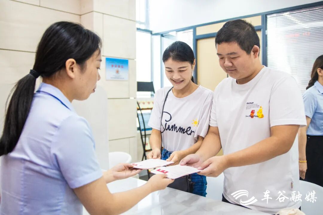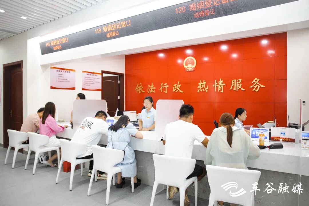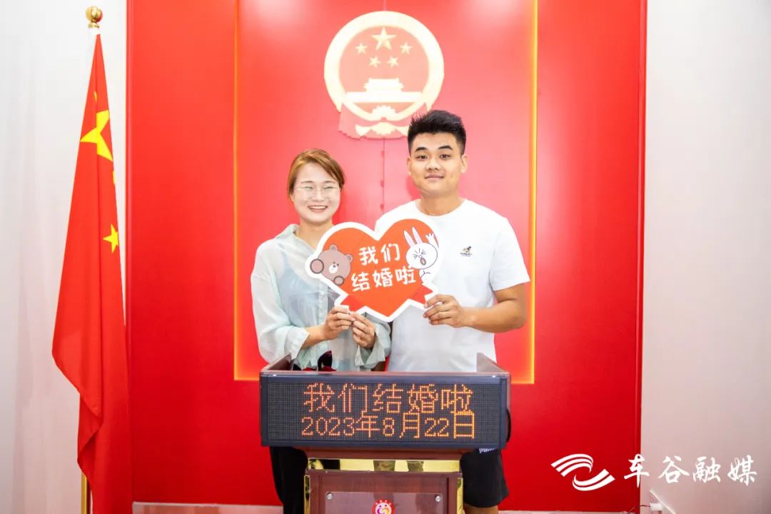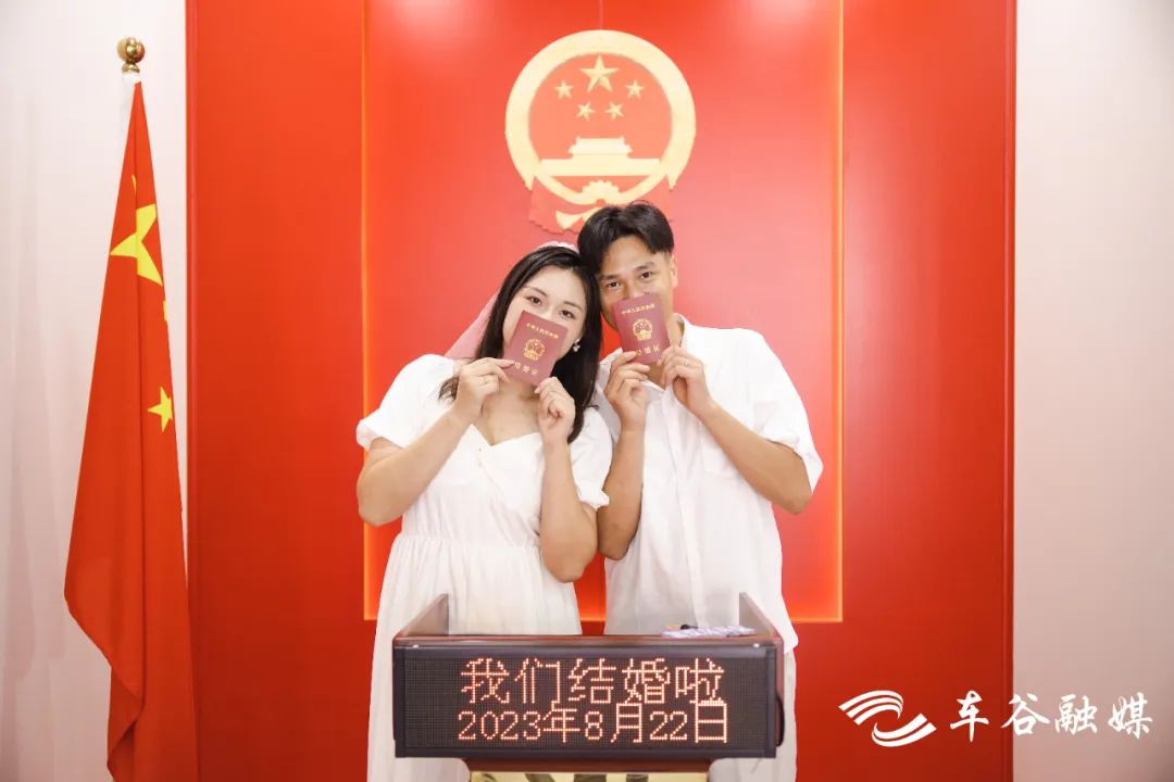 车谷融媒8月22日讯 七夕今宵看碧霄,牵牛织女渡河桥。8月22日是中国传统佳节“七夕”,因其美好的寓意,不少情侣选择在今天领证结婚,七夕节当天,近百对新人在武汉经开区喜结良缘。