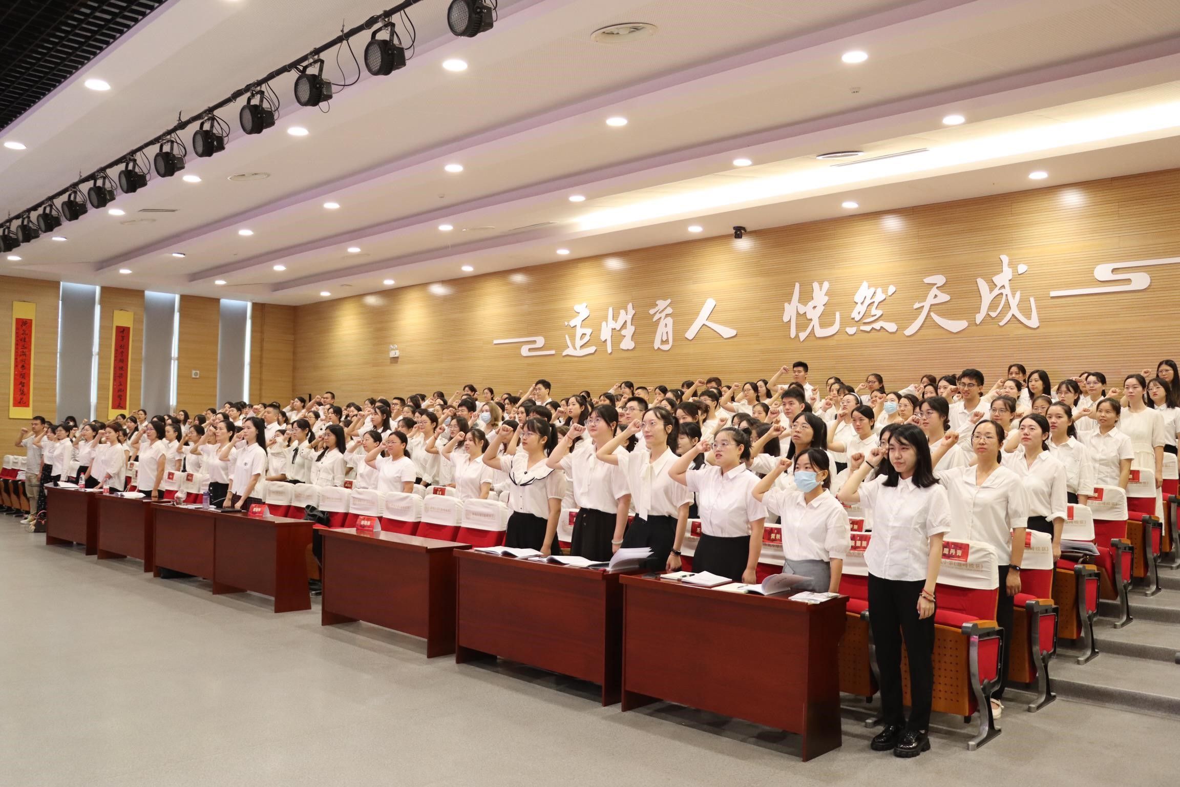 此次培训为期7天,以“奠基、赋能、突破”为主题。区往届新教师陈江波、新入职教师程谦、何曦分别作代表发言,并带领全体教师进行入职宣誓。