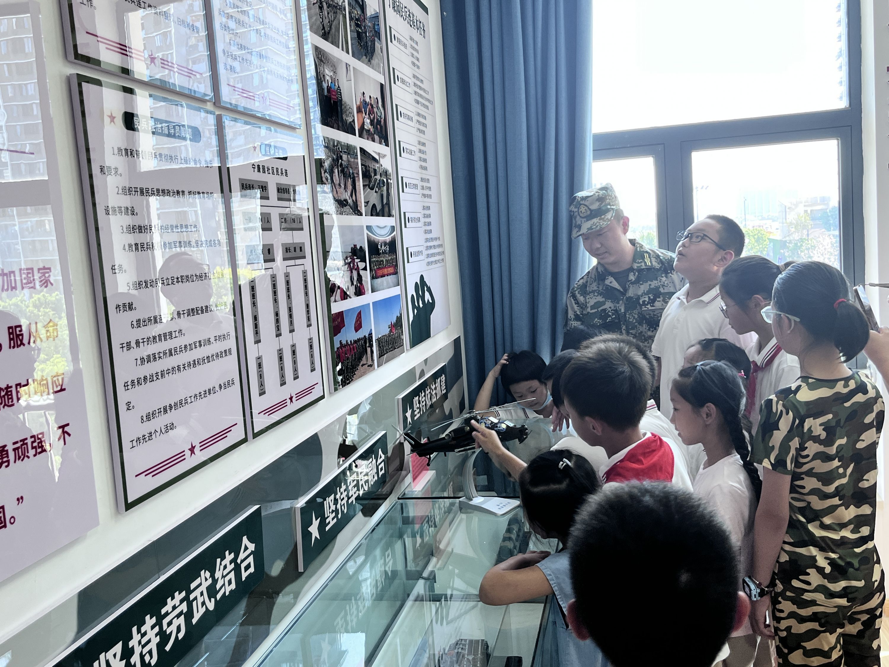 当天,孩子们还参观社区民兵之家,认识武器装备,观看爱国主义教育随着短片《长征》,工作人员引导孩子们进行交流互动,在场的小朋友们积极举手提问,现场气氛十分热烈。