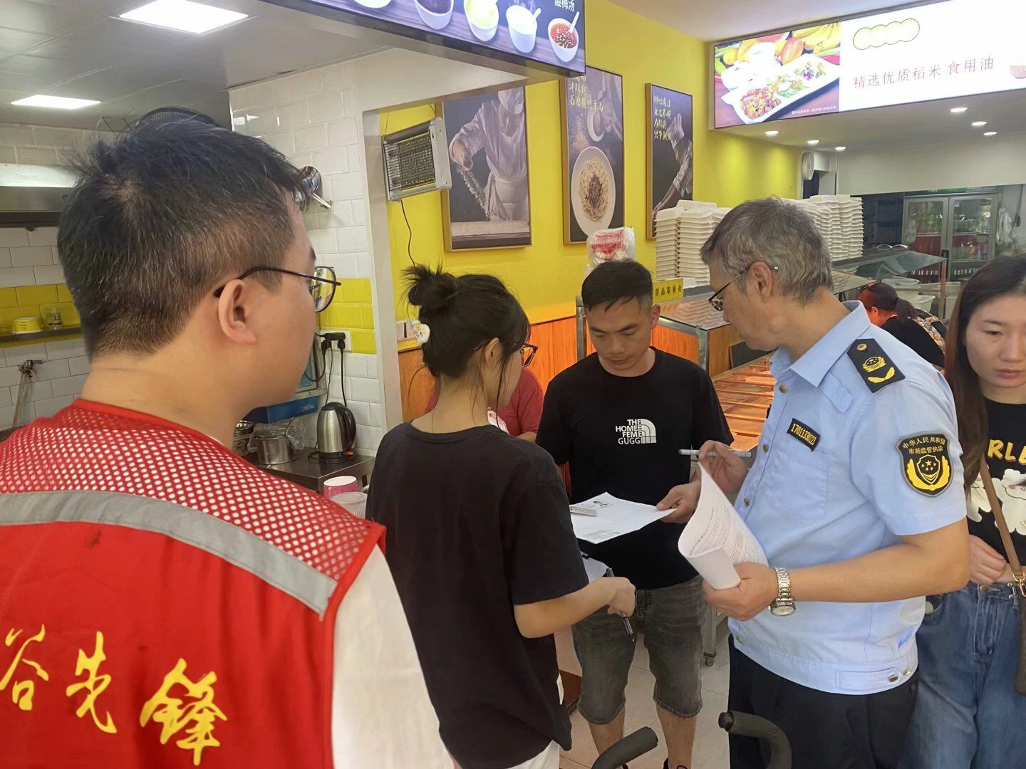 车谷融媒9月6日讯 9月5日,沌口街道枫桦苇岸社区联合区市场监管局,到枫桦苇岸社区北门商铺,上门为大家办理食品经营许可证。