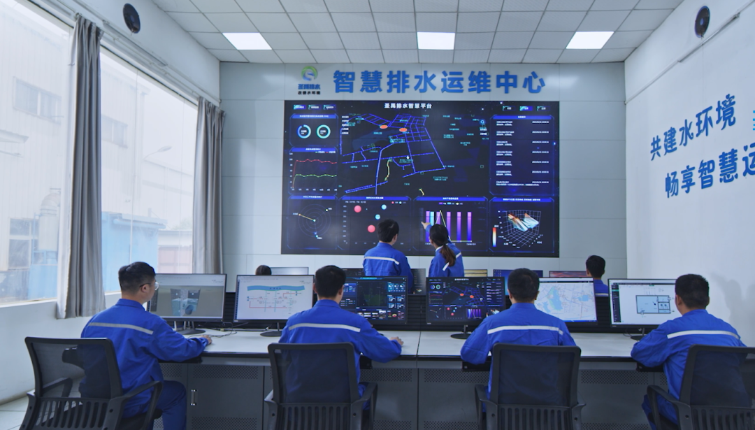 ▲在武汉圣禹排水运维中心,工作人员正通过智慧排水系统调度项目。通讯员供图