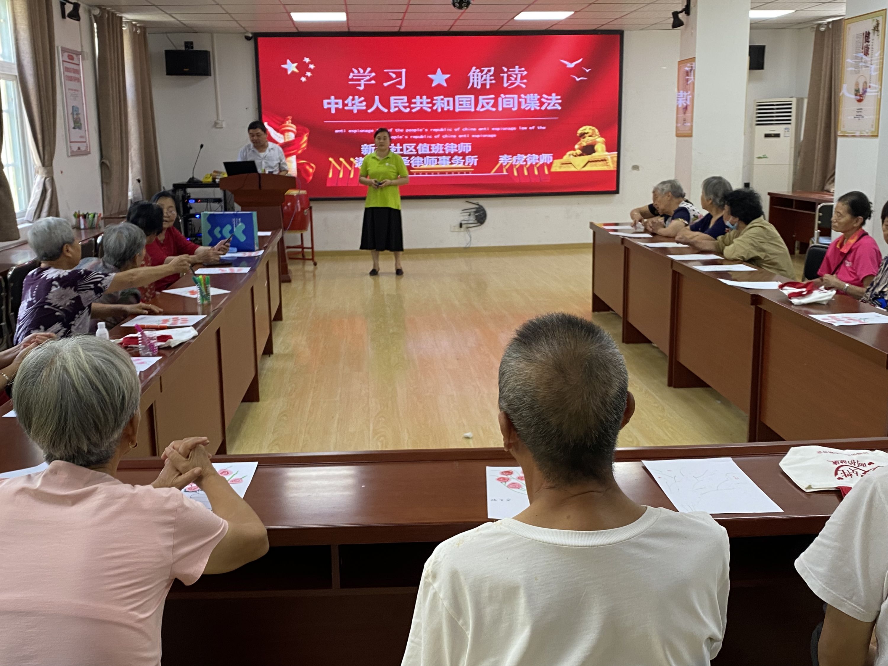 当天,社区律师为老人们宣传讲解《中华人民共和国反间谍法》等相关法律法规知识,并耐心地讲解了什么是国家安全、间谍行为的特点等,大大提高了居民对于反间谍的认识与防范能力。