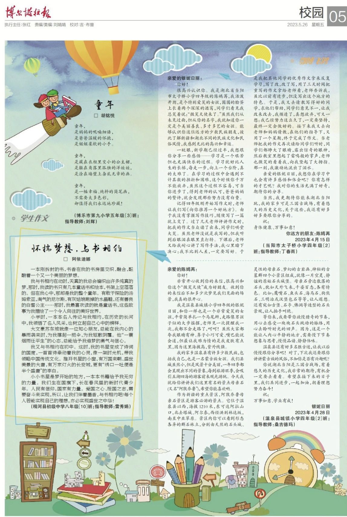 “学生们非常兴奋,因为精美的诗集里有他的名字,这种做法让学生们对写作更有兴趣了!”刘辉自豪地说,学生们看到自己的文章被印成铅字,小脸笑开了花。学校还成立了毛毛虫文学社,学生们都积极投稿,班上还有一个学生的诗歌被《博尔塔拉报》转载。
