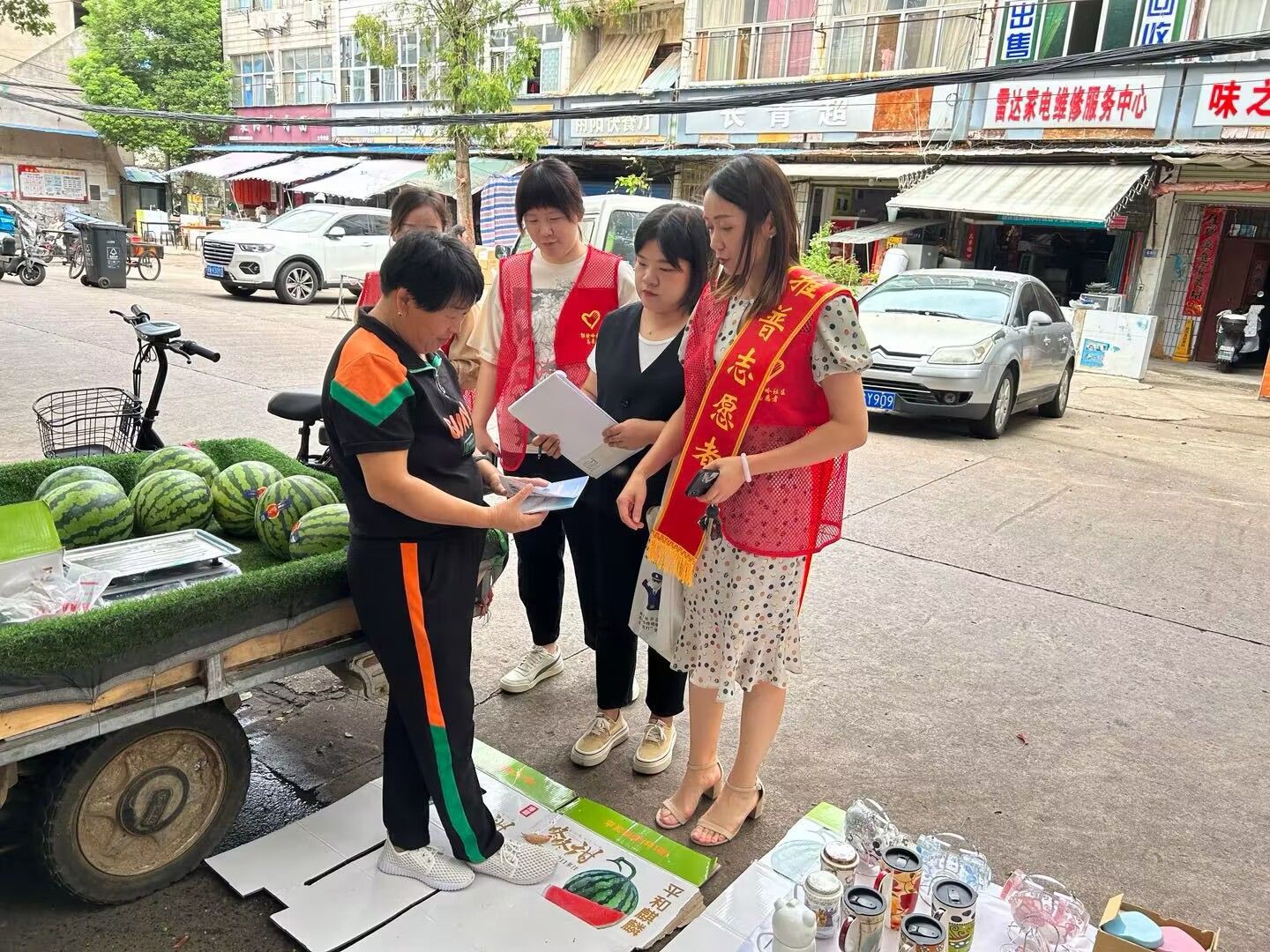 当天,社区推普志愿者们沿路向辖区居民发放推普宣传册。“阿姨,说普通话,从我做起,让我们一起行动起来,为孩子们作好榜样吧!”