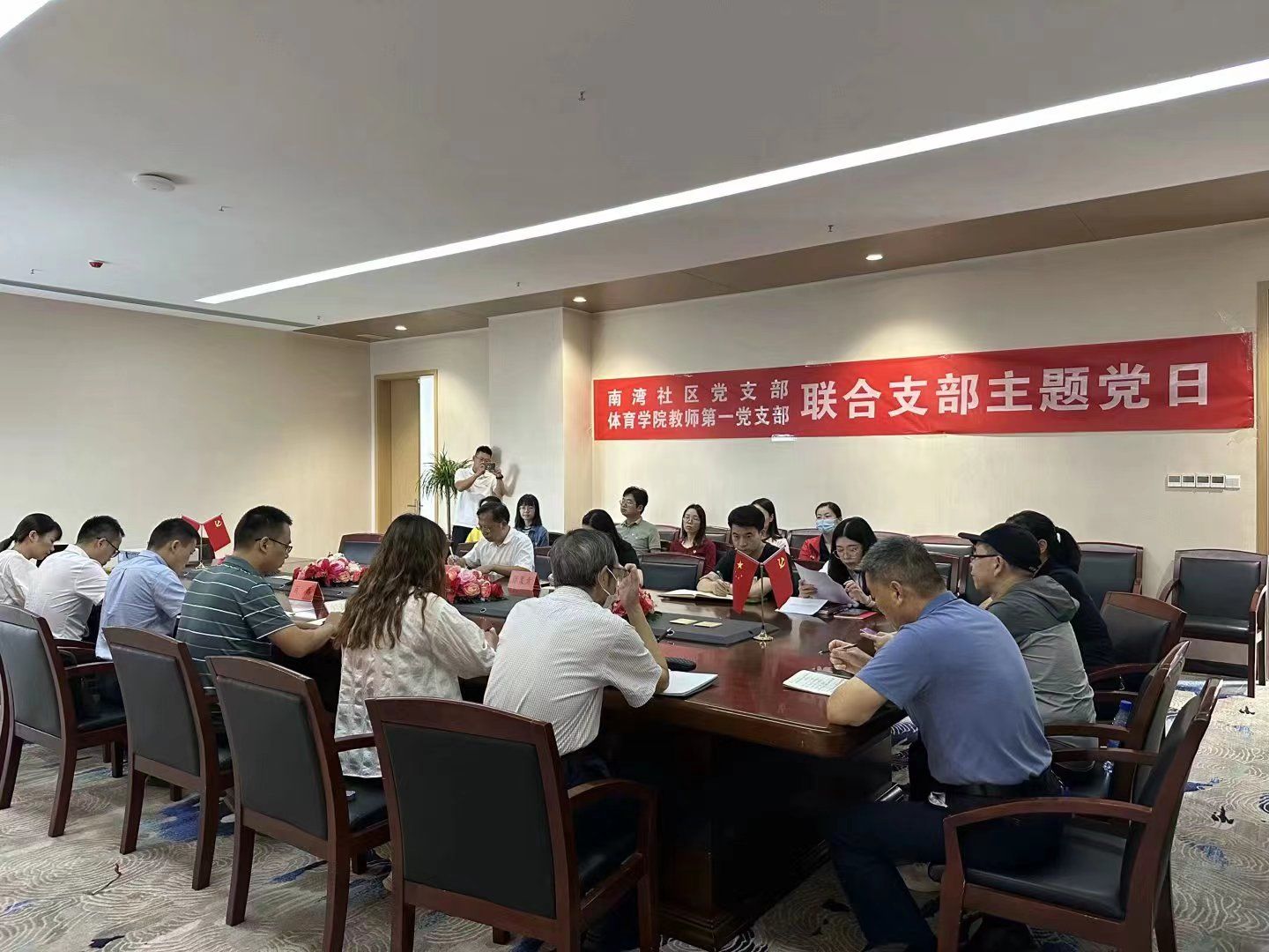 车谷融媒9月18日讯 9月15日,沌阳街道南湾社区党支部与武汉商学院体育学院教师第一党支部联合开展“党建引领聚合力,共建共享谱新篇”主题党日活动。