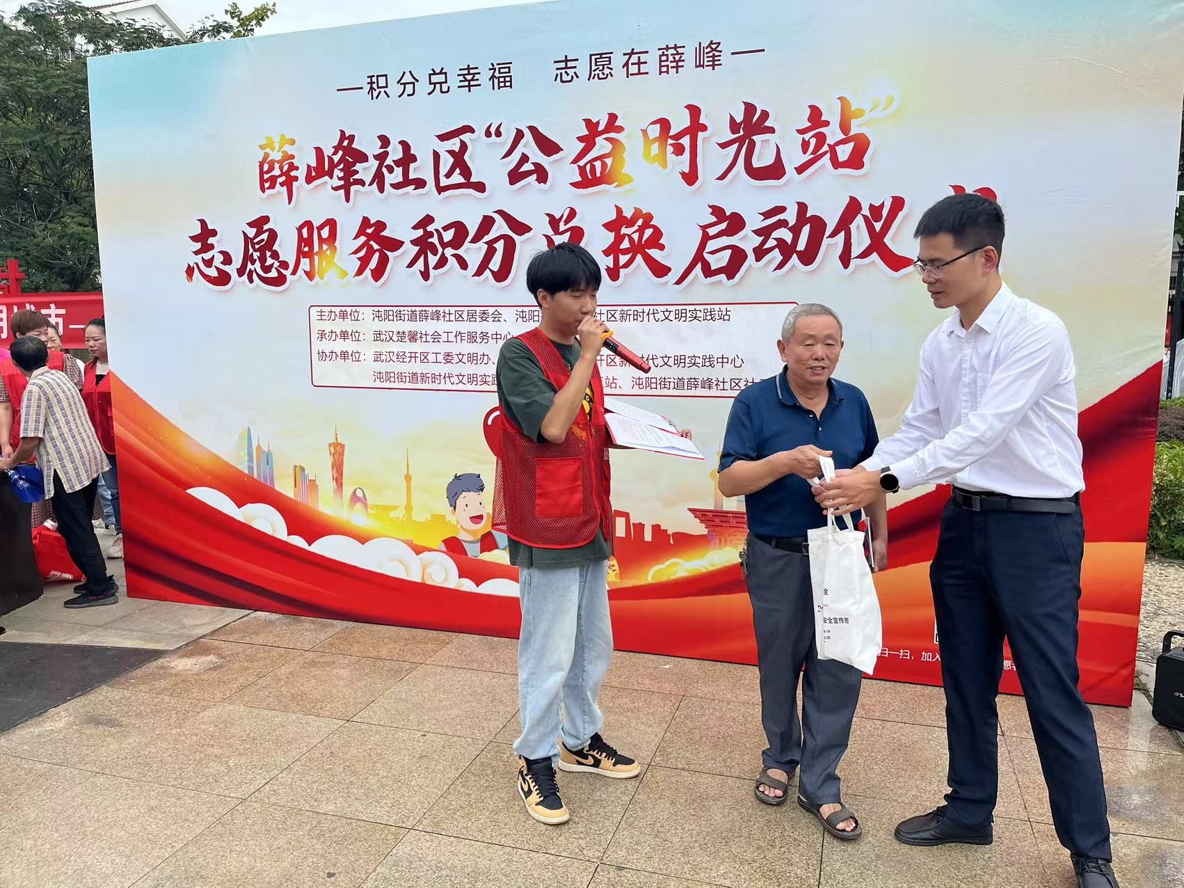 车谷融媒9月18日讯 9月14日,沌阳街道薛峰社区联合武汉楚馨社会工作服务中心开展“公益时光站”志愿服务积分兑换活动。