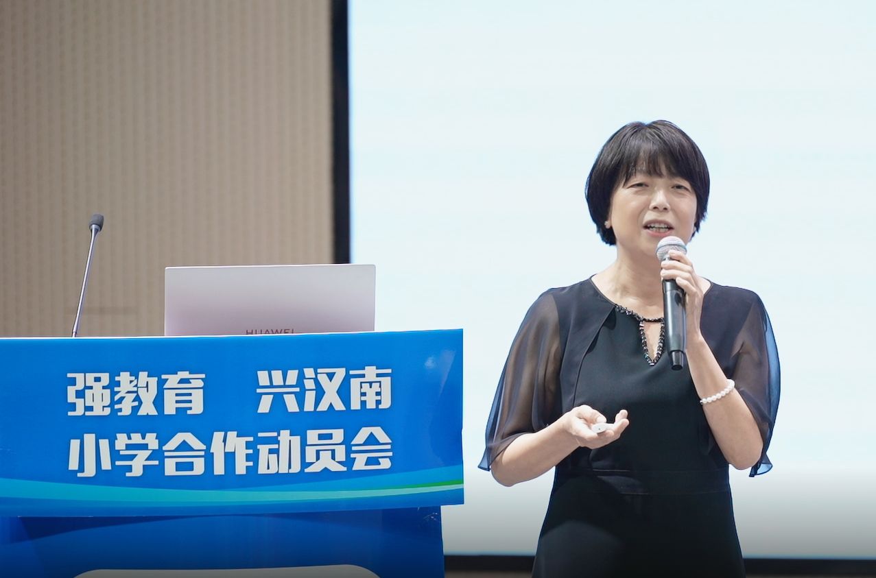 奥林小学校长林娜以《凝心聚力兴汉南 踔厉奋发向未来》为题,总结了奥林小学和育才小学在六年学区制改革过程中取得的经验和成果。她表示,将积极响应“强教育 兴汉南”教育改革的重大举措,投身到教联体建设之中,扬教联体模式之长,补教联体成员之短,从“精准诊断痛点”“锚定改革目标”“搭建共生平台”三个方面促进两校深度融合,实现教联体高质量发展。