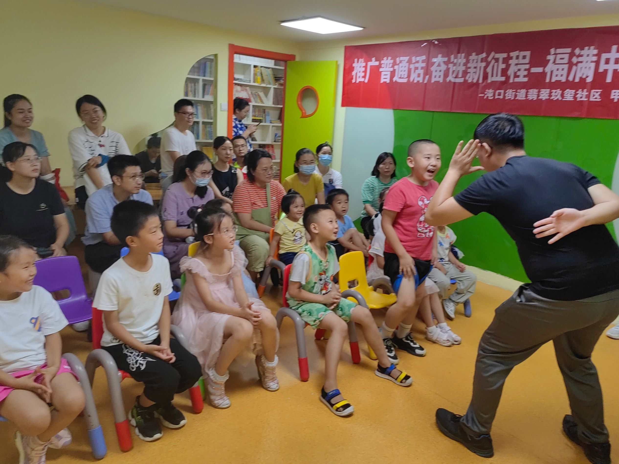 车谷融媒9月20日讯 9月16日,沌口街道翡翠玖玺社区携手甲壳虫阅读素养中心举办“福满中秋”沉浸式亲子读书会,通过游戏、剧场故事、朗诵等内容新颖的社群互动形式,让大家“悦”享欢乐家庭日。