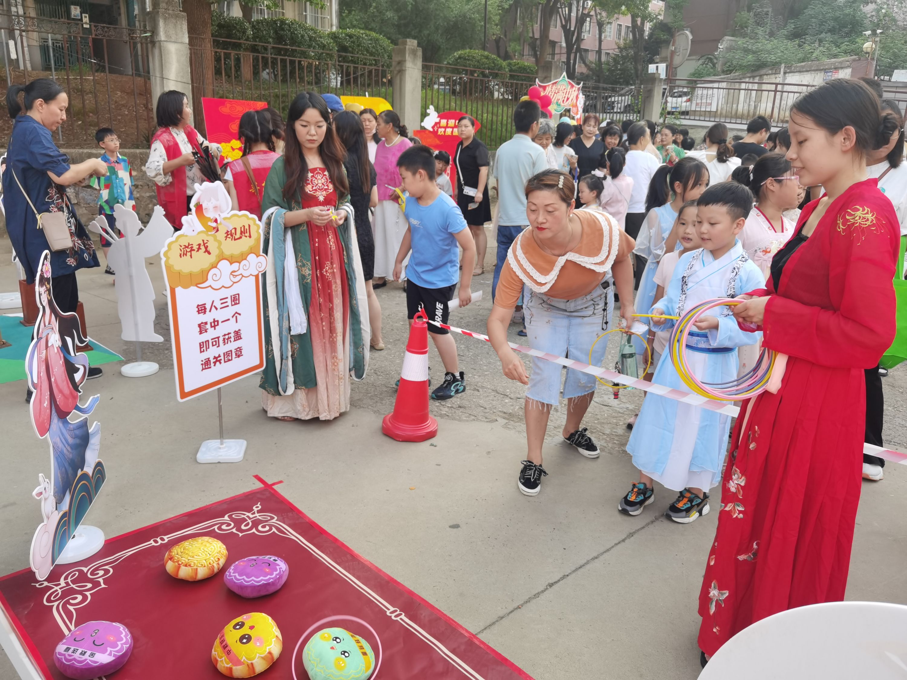 活动现场分主题打卡拍照区、游戏互动区、文明创建宣传区及游园奖品兑换区。居民们兴致勃勃穿梭在各主题活动区,其中不乏身着汉服的居民,热闹又别具新意的打卡形式,给游园活动增添了更多的趣味性。