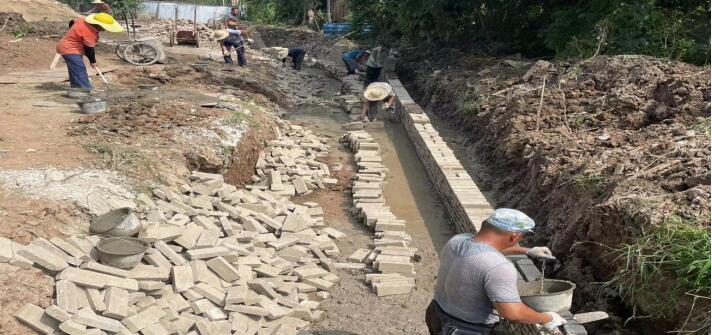 周边的村民也义务参加到此次的排污修建队伍中,党员干部和志愿者各司其职,在大家的共同努力下,历时一个星期排水工程修建完工。