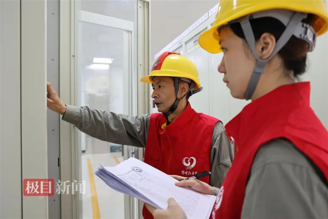 ▲国网武汉供电公司变电运维分公司郭徐岭运维班正在核对数据