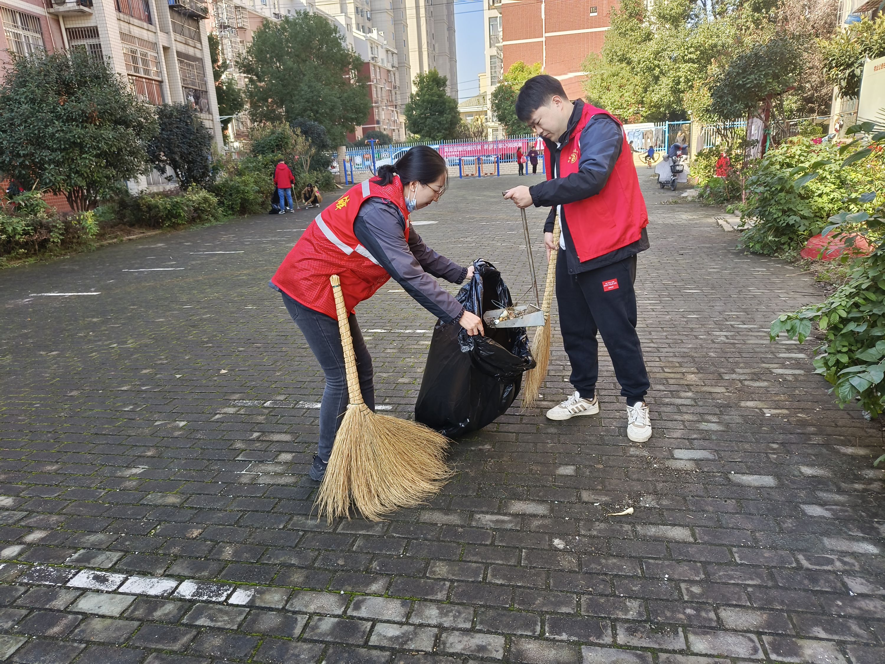 在凤凰苑还建小区,党员们身穿志愿者马甲,手持扫把、垃圾夹、垃圾袋捡拾暴露垃圾,擦洗公共设施,铲除“牛皮癣”,不少居民主动参与到志愿服务中来,清理房前屋后随意堆放的杂物。