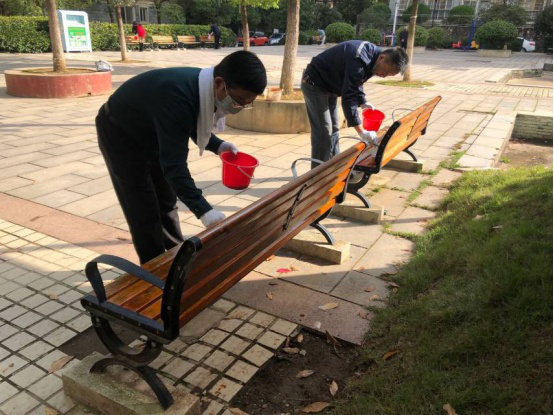 这一提议得到了社区党委的大力支持。燕良滔马上组建了6人团队,随后几天他们分成3组,分时段对广场座椅进行了清洗、打磨、抛光、上漆、护理,直到做完最后的修补工作,贴上提醒标语,接受社区验收。